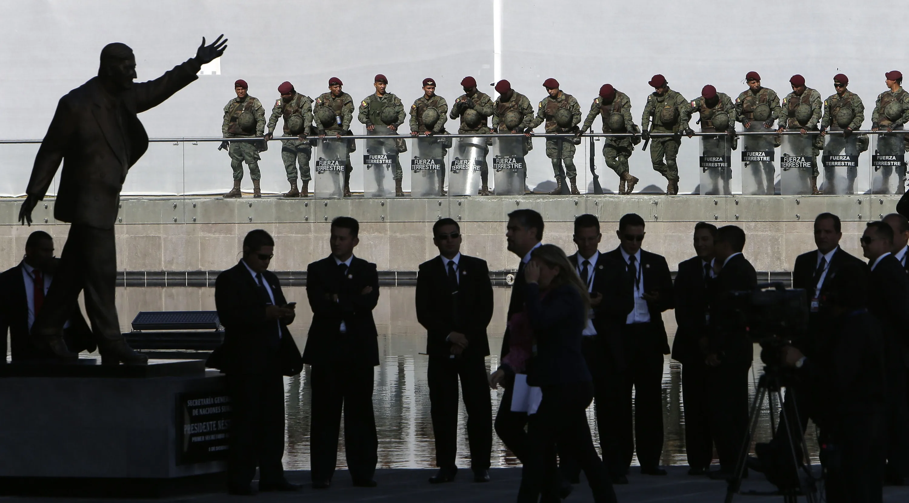 Security personnel guard the Unasur building during the IV Summit of the Community of Latin American and Caribbean States, CELAC, in Quito, Ecuador, Wednesday, January 27, 2016. The Dominican Republic will take over the rotating presidency of the CELAC from Ecuador, during the summit. (Photo by Dolores Ochoa/AP Photo)