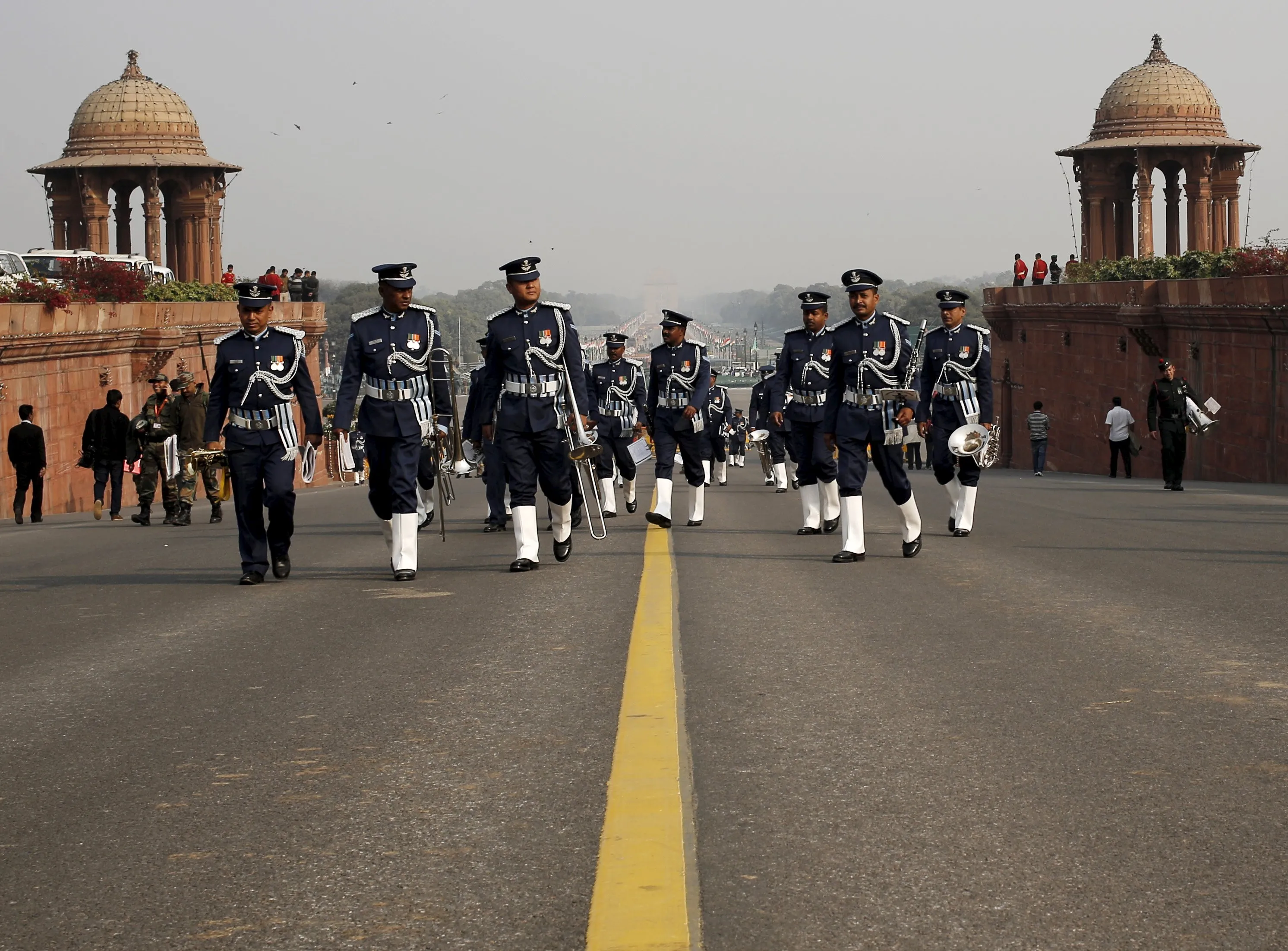 Members of the Indian military band walk after taking part in a rehearsal for the “Beating the Retreat” ceremony in New Delhi, India, January 27, 2016. (Photo by Anindito Mukherjee/Reuters)
