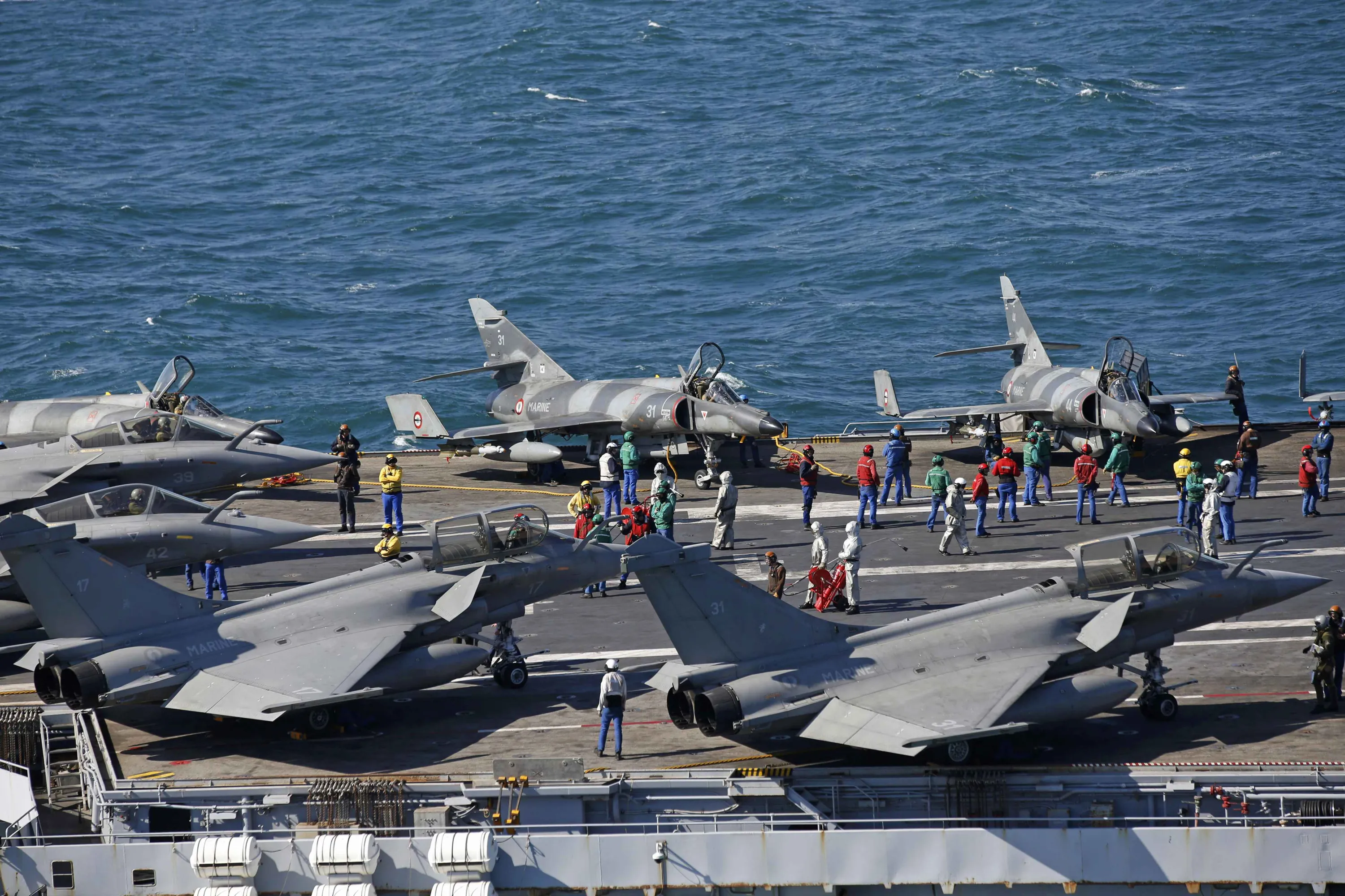 Rafale fighter jets and Super Etendards are seen aboard France's Charles de Gaulle aircraft carrier as it continues its mission in the Gulf, January 28, 2016. (Photo by Philippe Wojazer/Reuters)