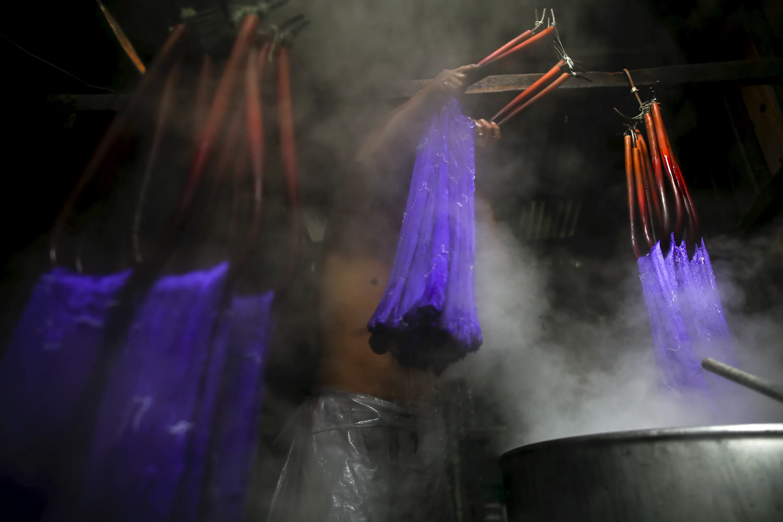 A worker dyes silk in central Bangkok, Thailand, January 25, 2016. (Photo by Athit Perawongmetha/Reuters)