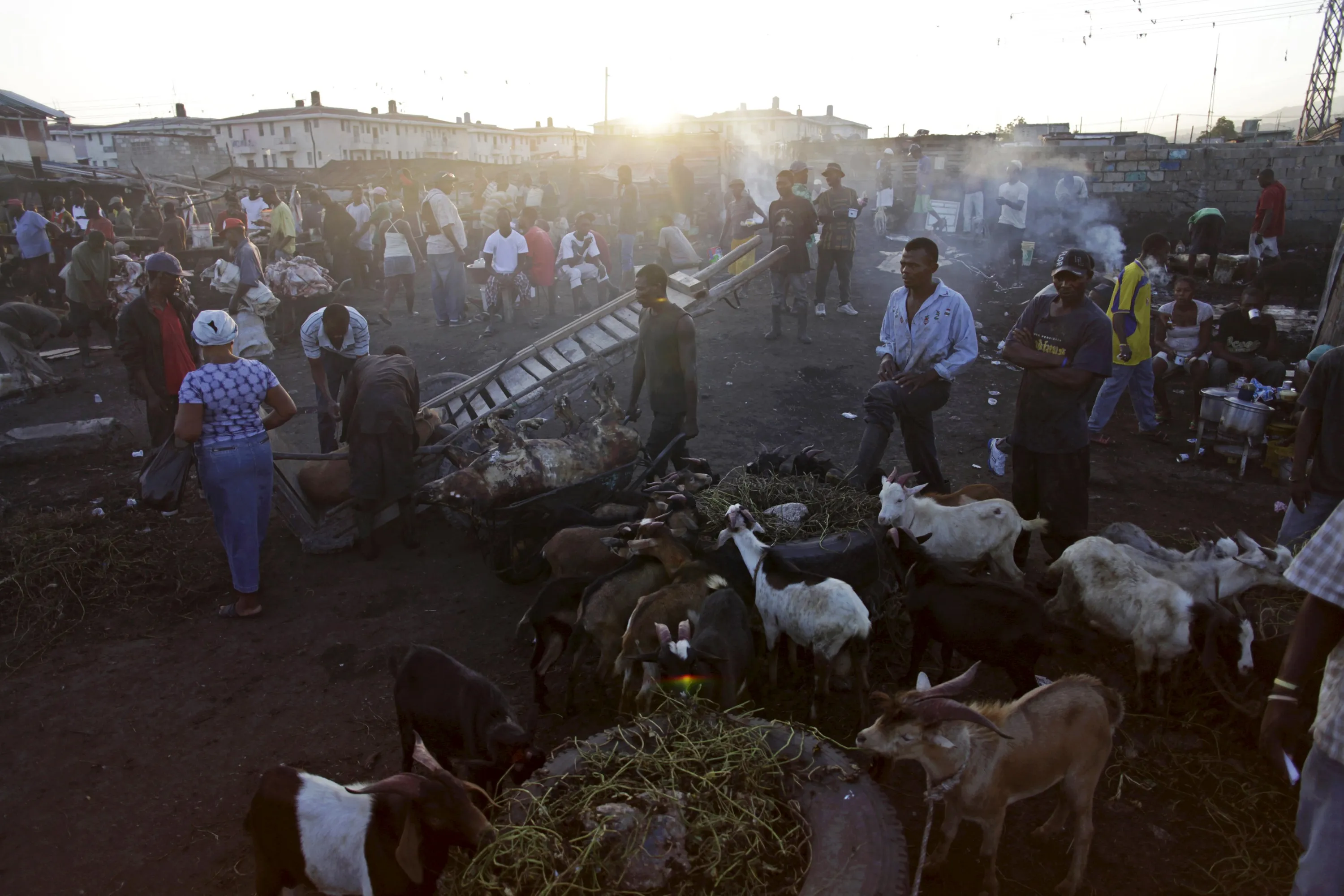 Live goats stands in La Saline slaughterhouse in Port-au-Prince, Haiti, March 27, 2015. (Photo by Andres Martinez Casares/Reuters)