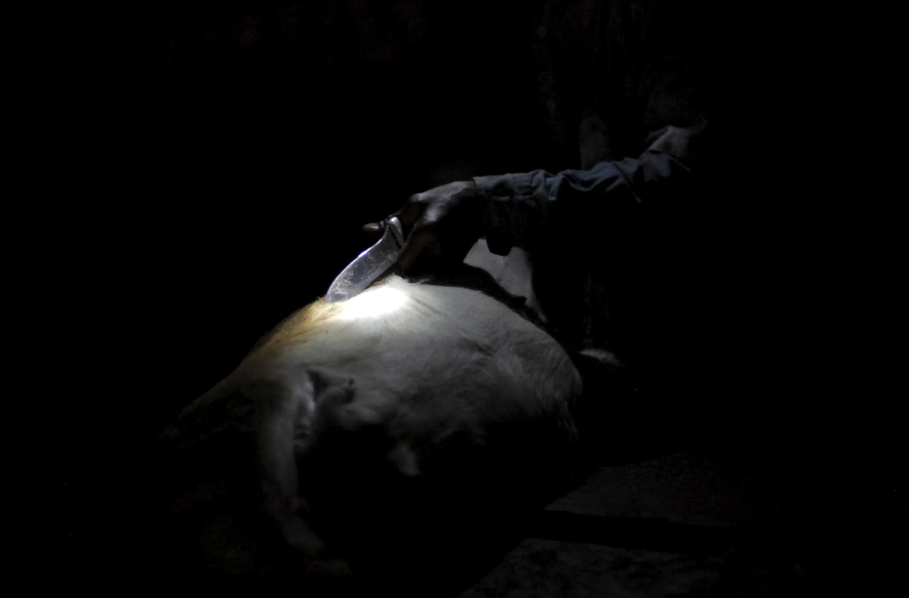 A butcher cuts the skin of an animal as he peels it at La Saline slaughterhouse in Port-au-Prince, Haiti, March 19, 2015. (Photo by Andres Martinez Casares/Reuters)