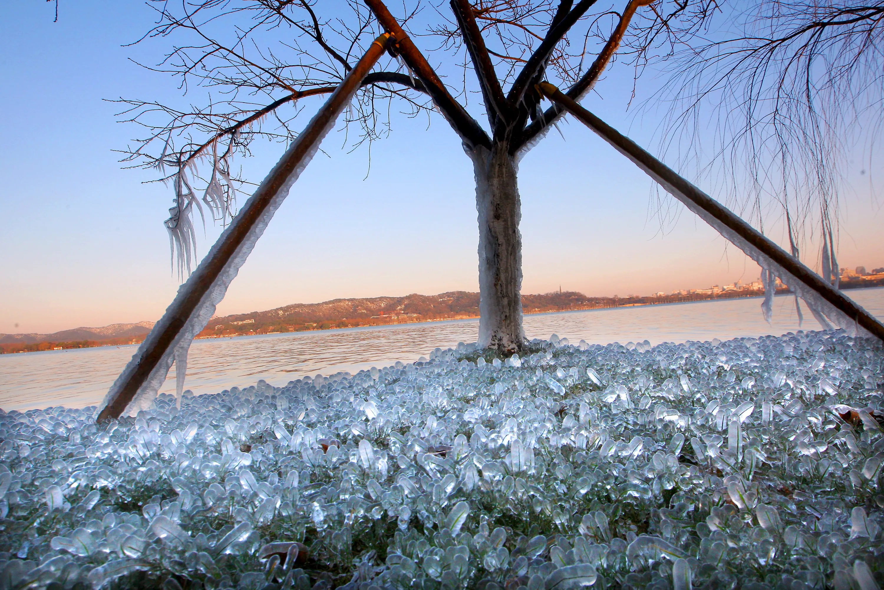 Plants are seen frozen by the side of the West Lake in Hangzhou, Zhejiang province, January 25, 2016. (Photo by Reuters/Stringer)