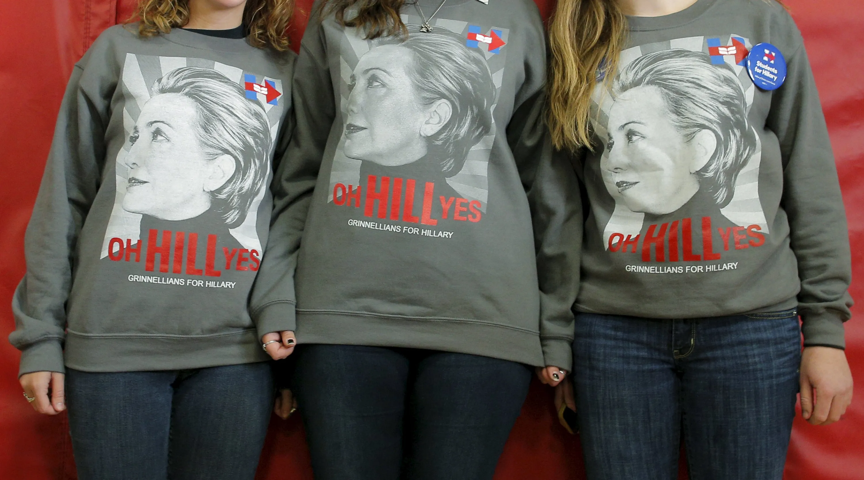 Grinnell College students Sarah McCarthy (L), Mollie Jo Blahunka (C) and Hannah Lundberg pose for a videographer while waiting for U.S. Democratic presidential candidate Hillary Clinton at the Berg Middle School in Newton, Iowa January 28, 2016. (Photo by Brian Snyder/Reuters)