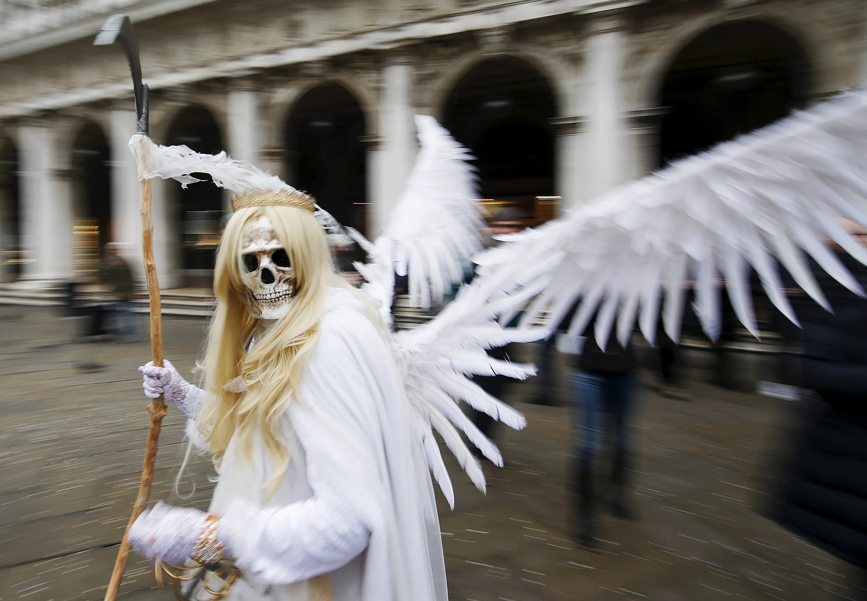 A masked reveller poses in San Marco Piazza during the Venice Carnival, January 30, 2016. (Photo by Alessandro Bianchi/Reuters)
