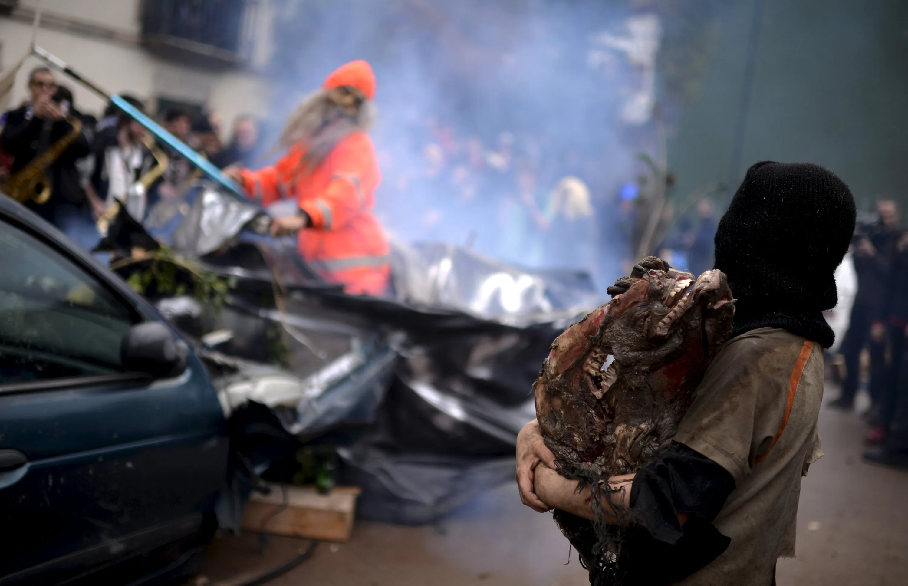 A boy carries a horses head during carnival celebrations in Ituren February 1, 2016. (Photo by Vincent West/Reuters)