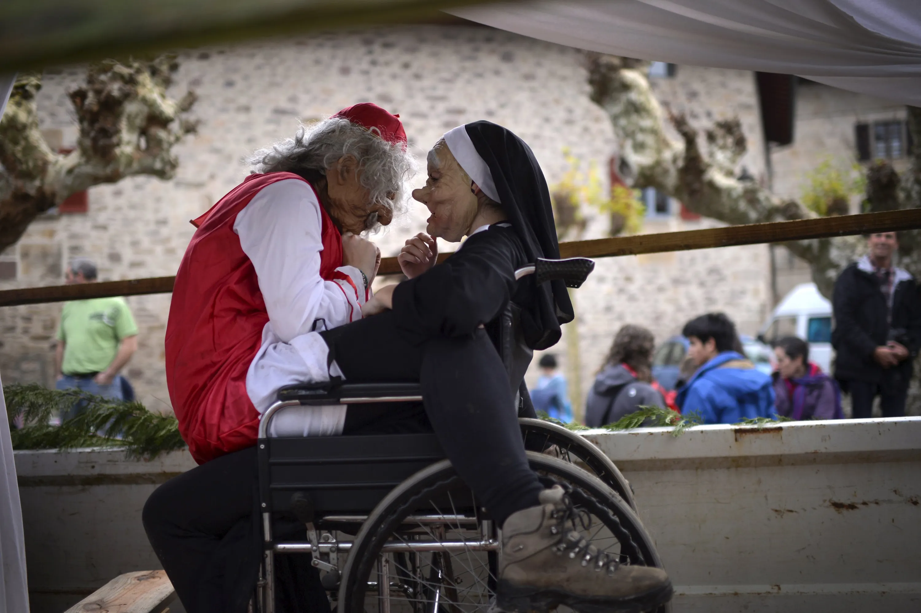Villagers dressed as a priest and nun sit together in a wheelchair during carnival celebrations in Ituren February 1, 2016. (Photo by Vincent West/Reuters)