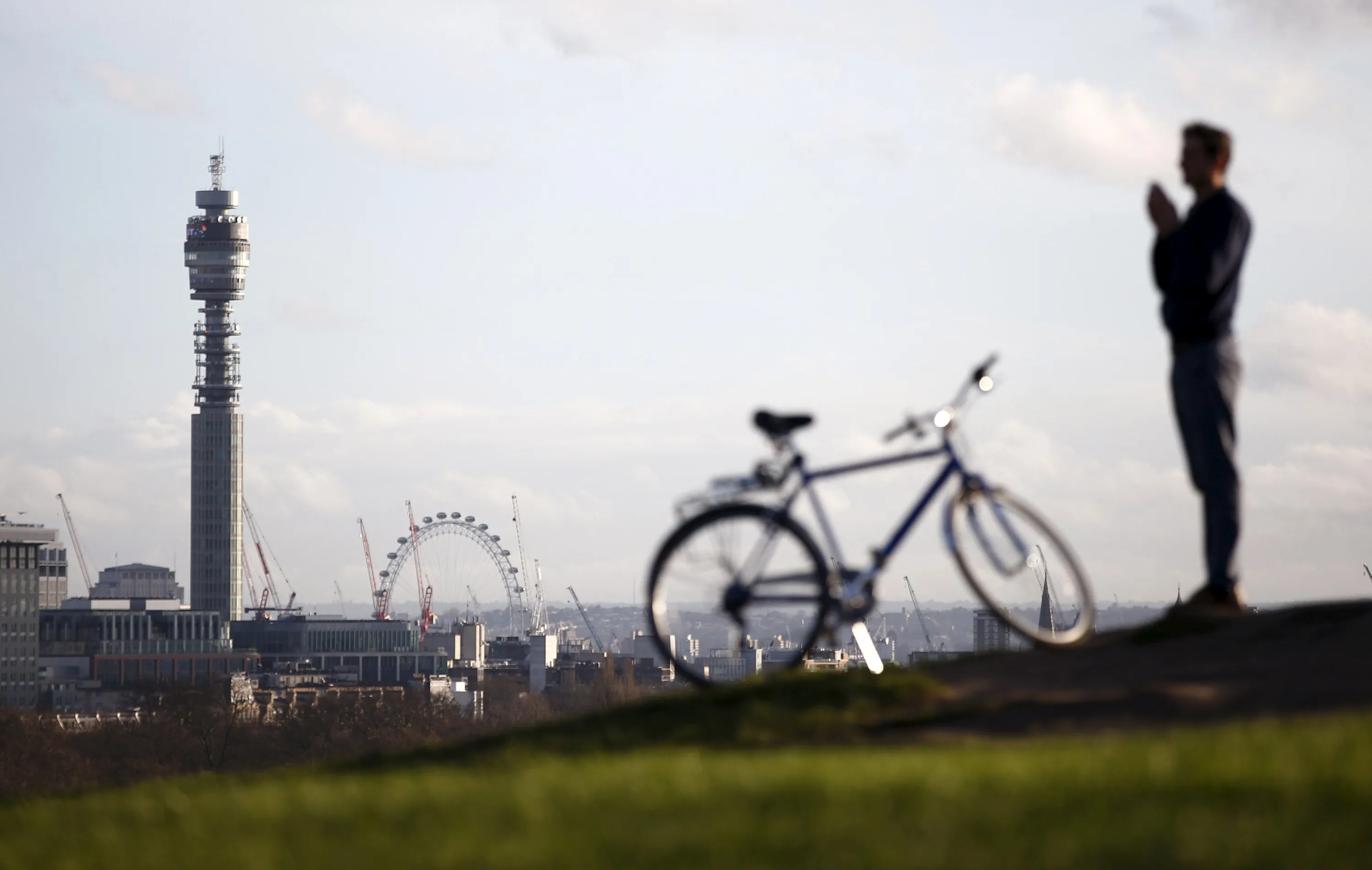 A man looks toward Telecom Tower from Primrose Hill in London, Britain, December 29, 2015. Britain's BT Group posted the best revenue growth for seven years in its latest quarter, driven by a strong performance in consumer broadband and putting it in a strong position to incorporate the mobile market leader EE. (Photo by Peter Nicholls/Reuters)