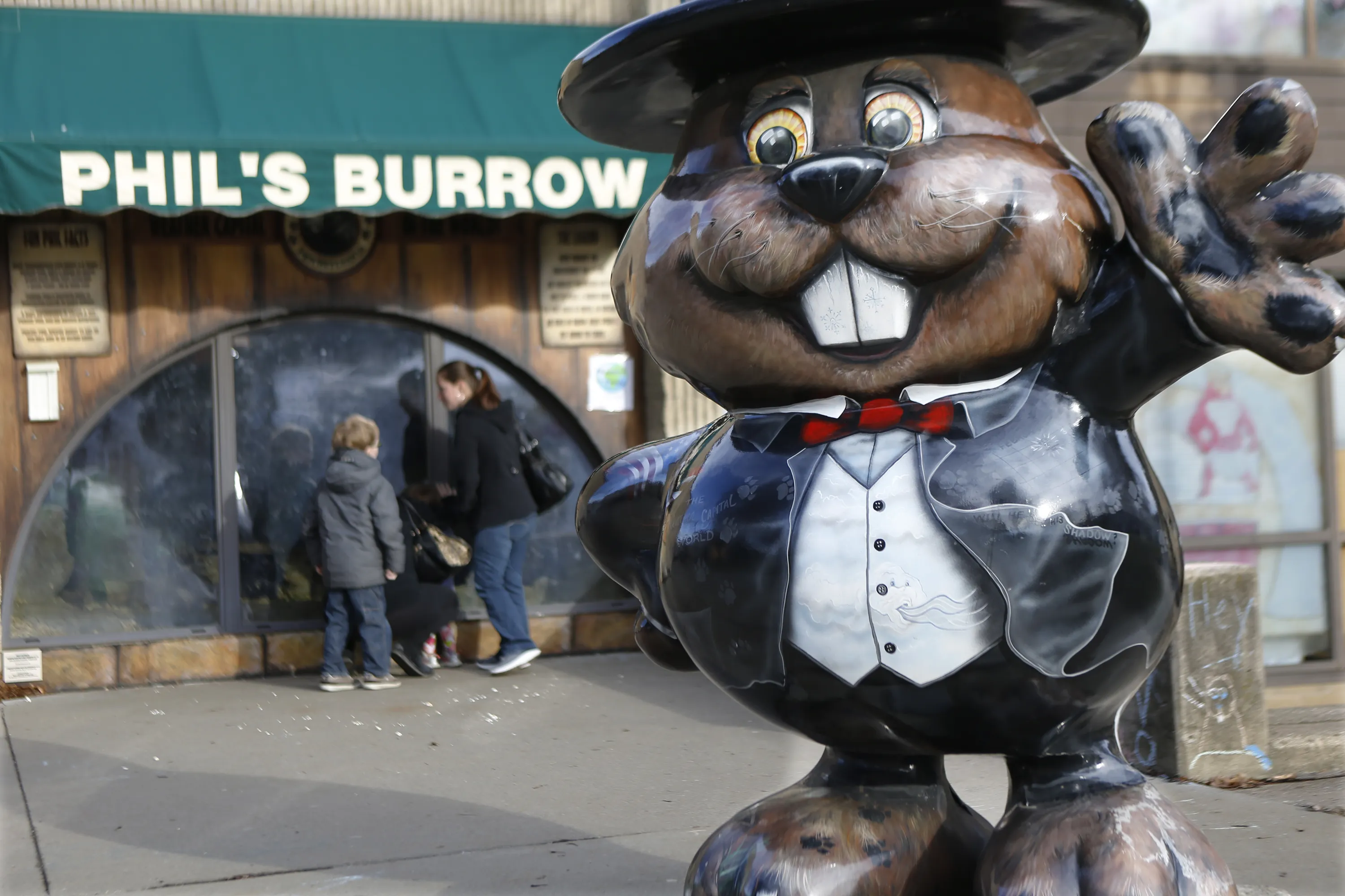 Visitors look through the windows at the Punxsutawney Public Library where groundhogs are on display at “Phil's Burrow” in Punxsutawney, Pa., Monday, February 1, 2016. (Photo by Keith Srakocic/AP Photo)