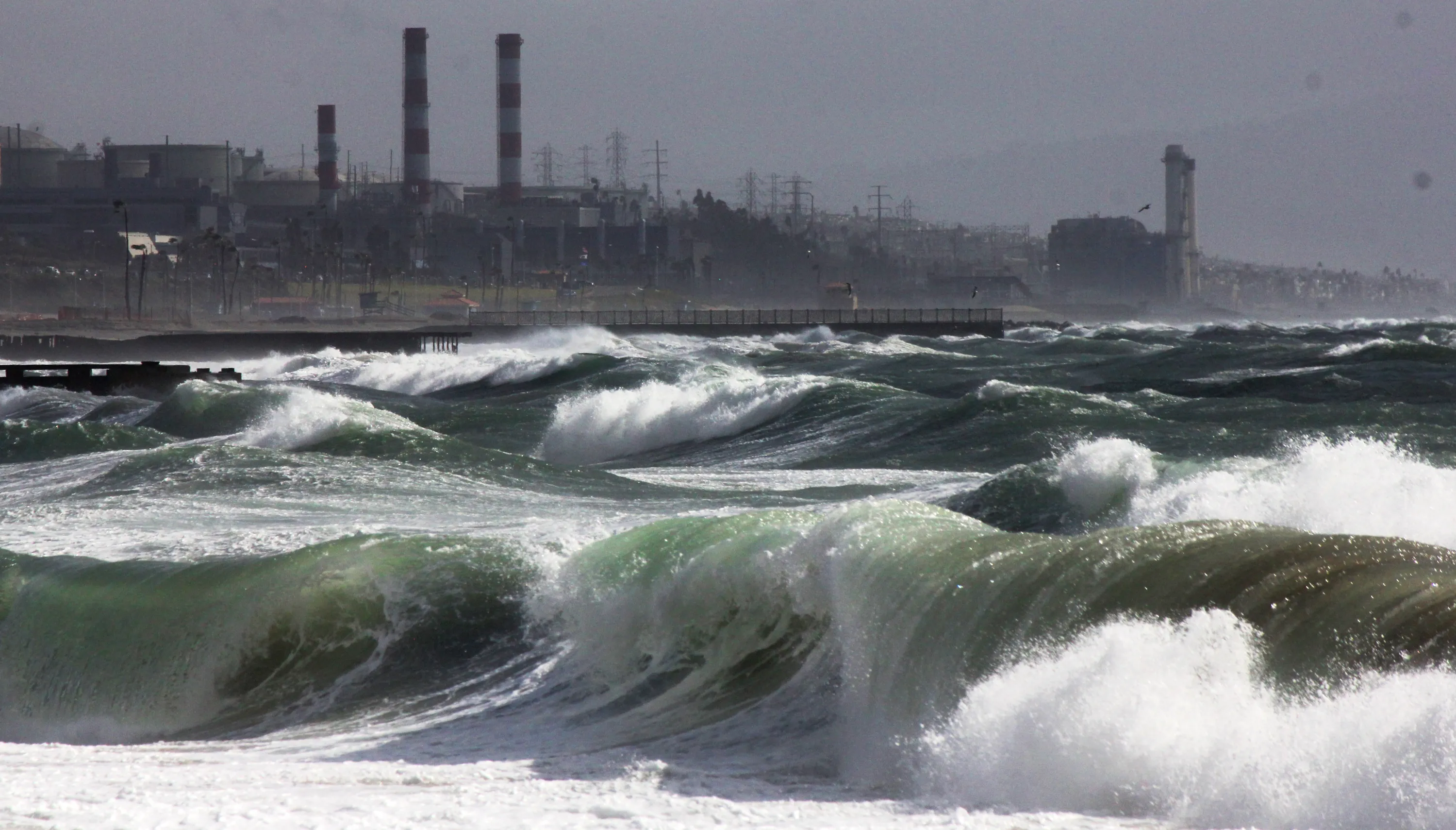 Fierce winds trailing a daylong storm churn the Pacific Ocean off the Los Angeles community of Playa del Rey on Sunday, January 31, 2016. Strong winds downed dozens of trees and power poles and ripped off rooftops across Southern California. The storm also churned up high surf along west and northwest-facing beaches. (Photo by John Antczak/AP Photo)