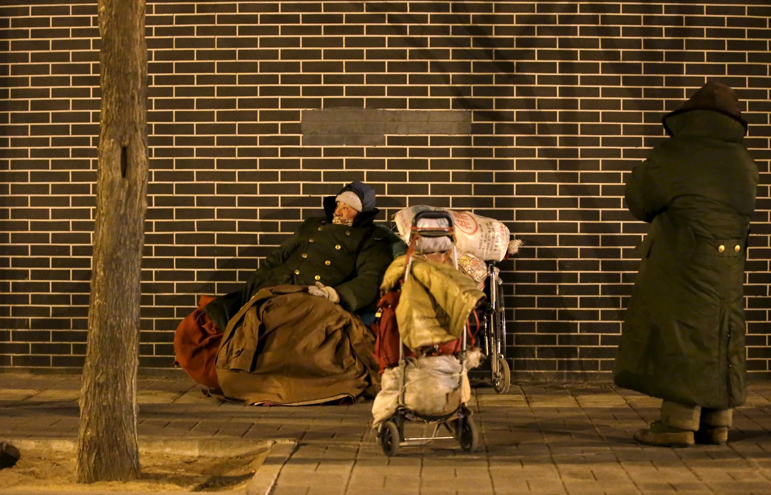 Homeless people are seen on a cold winter night near Beijing South Railway Station in Beijing, China, January 23, 2016. According to Xinhua News Agency, China's national observatory raised the weather warning alert to orange on Saturday morning as much of the country braced for the worst cold in 30 years. (Photo by Jason Lee/Reuters)