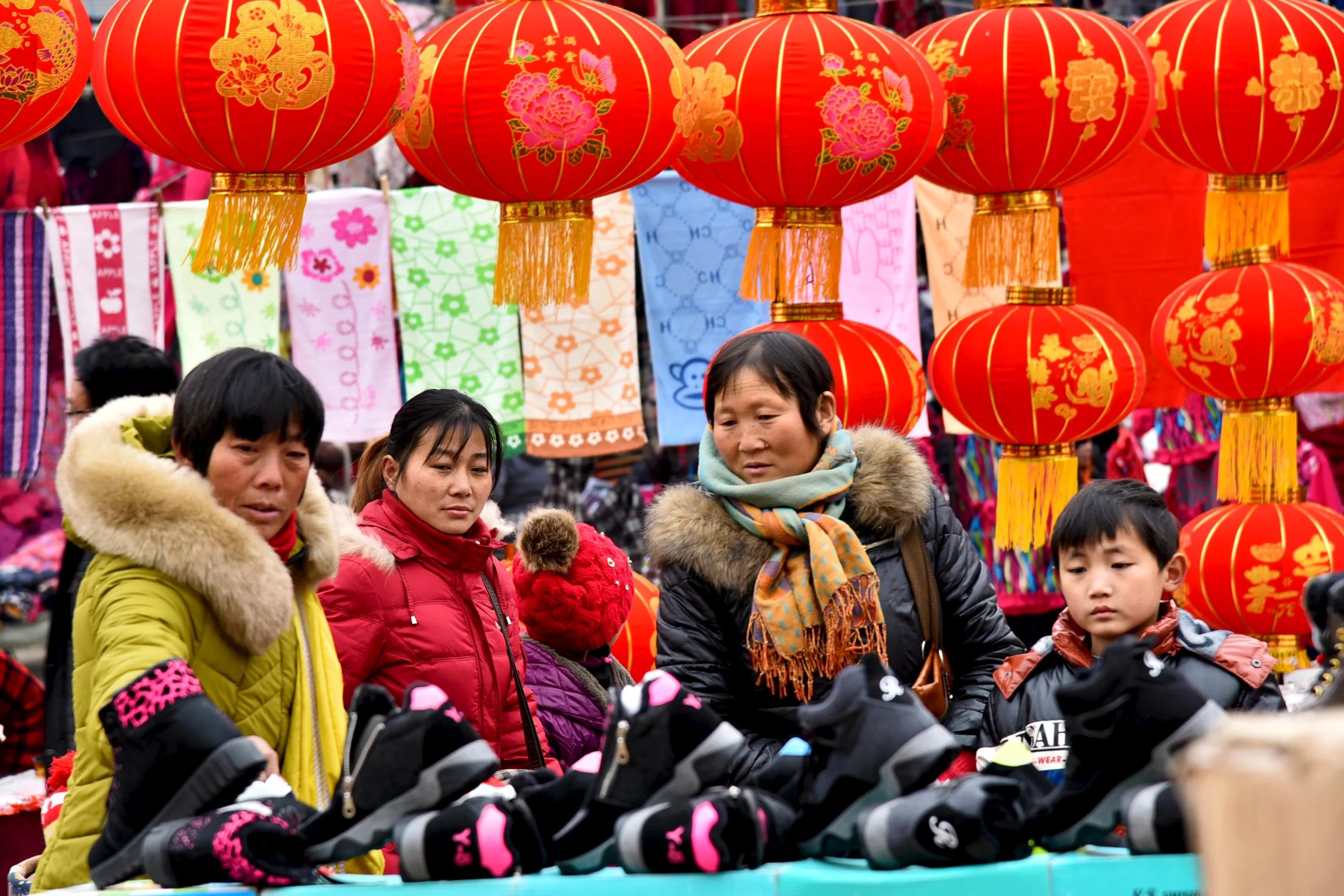 People shop at a new year market ahead of the upcoming Spring Festival in Zaozhuang, Shandong province, January 28, 2016. (Photo by Reuters/China Daily)