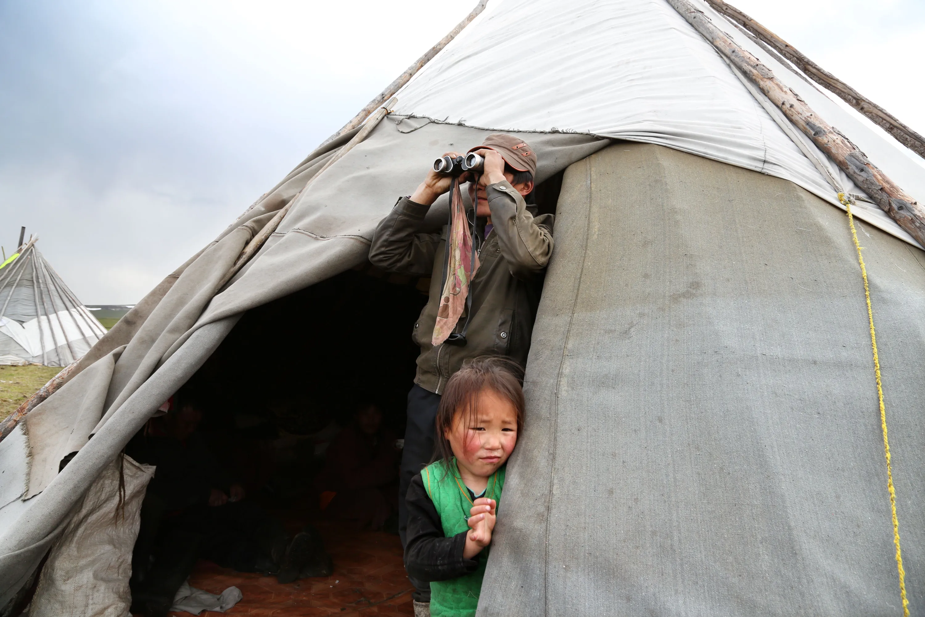 Tsaatan people live in yurts made primarily of birch bark that look like the teepees of Native Americans. (Photo by Pascal Mannaerts/Rex Feature/Shutterstock)