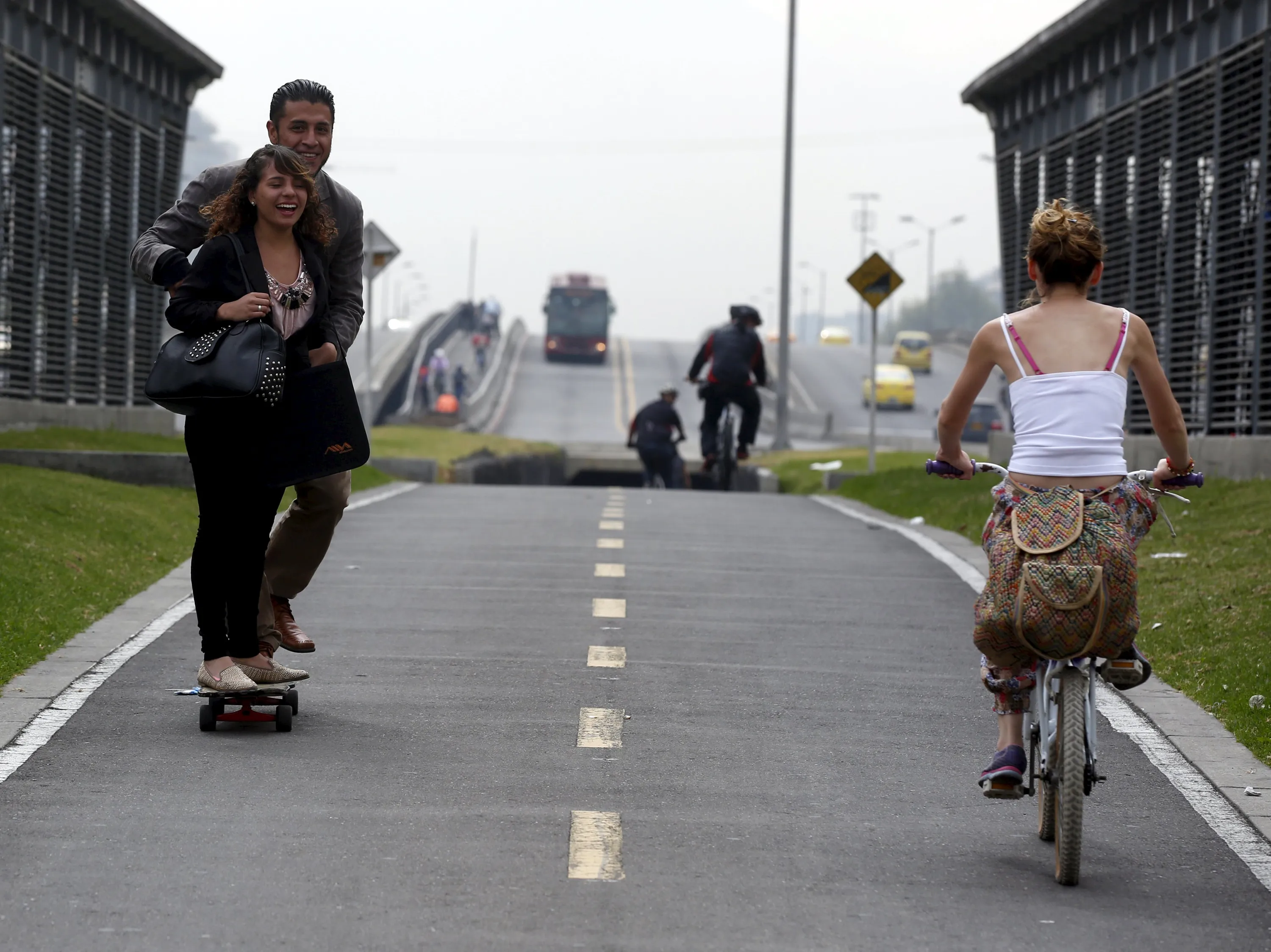 A couple skateboards during “No Car Day” in Bogota, Colombia February 4, 2016. (Photo by John Vizcaino/Reuters)