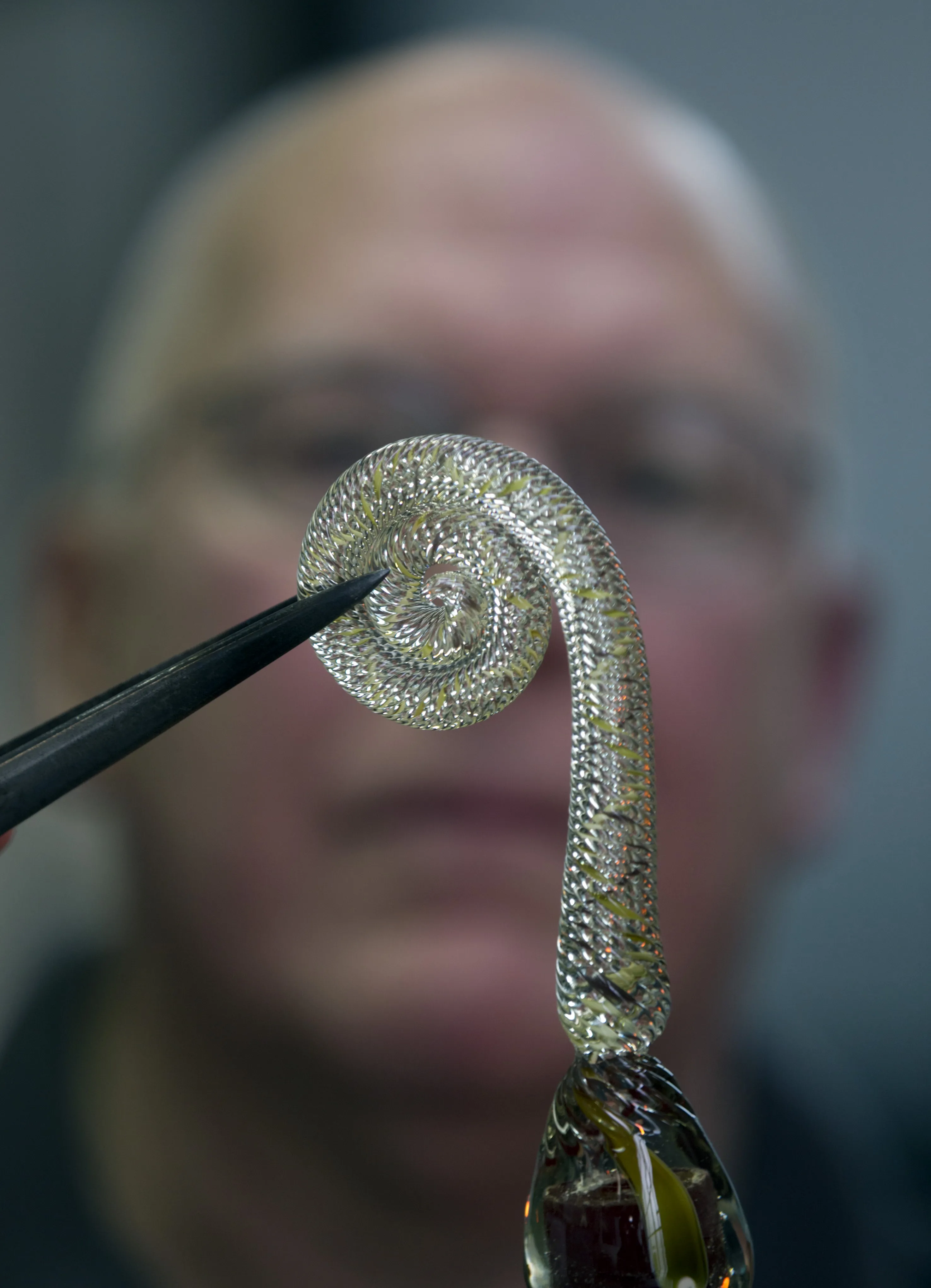 In this Friday, January 22, 2016 photo, glassblower William Gudenrath makes the glass body of a dragon that will be used on a goblet with techniques used by Renaissance Venetians at the Corning Museum of Glass in Corning, N.Y. Gudenrath spent decades researching how Renaissance-era glassmakers produced objects that are now considered works of art. (Photo by Mike Groll/AP Photo)