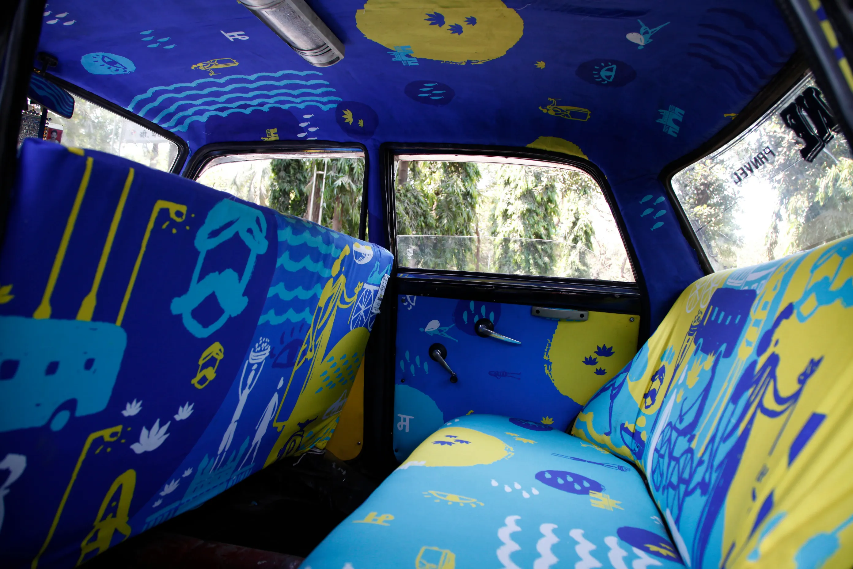 In the fitting process the fabric is applied to seats, door panels and ceilings. (Photo by Vinit Bhatt/Taxi Fabric/The Guardian)