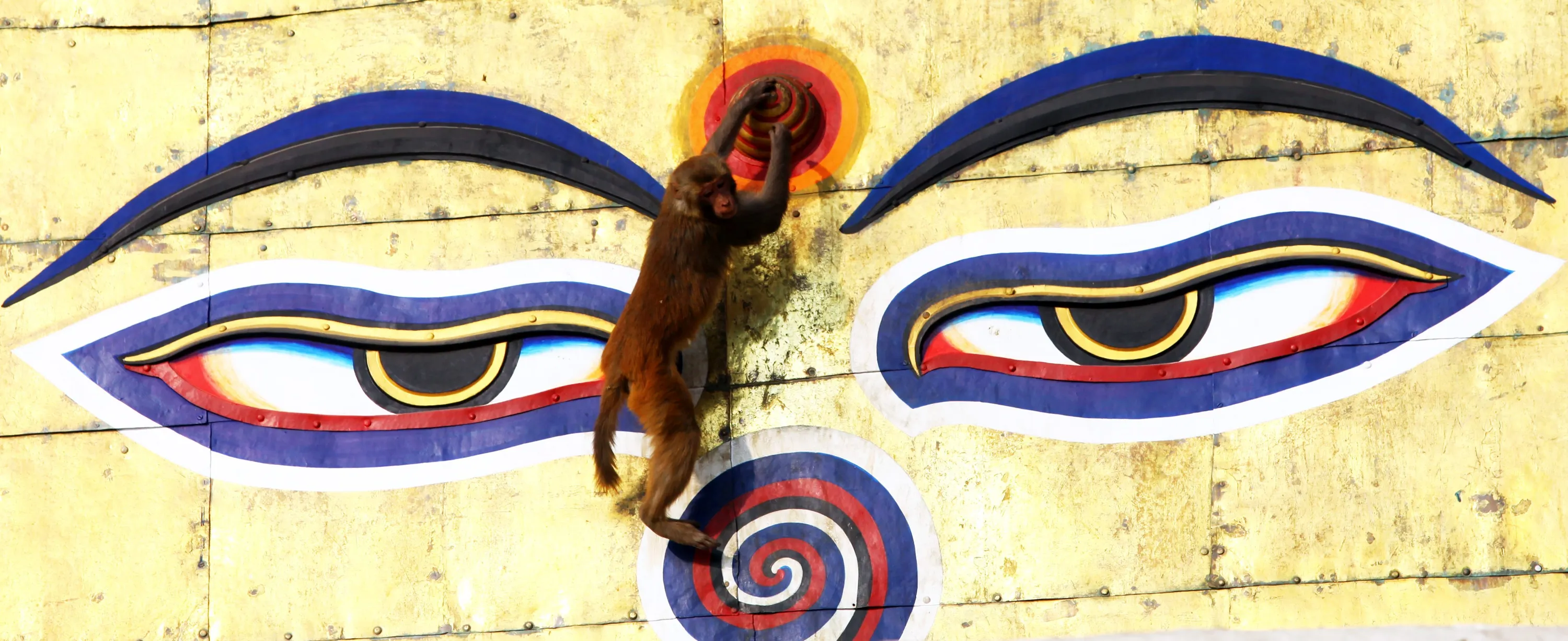 A monkey hangs at the Swayambhunath Stupa in Kathmandu, Nepal on February 1, 2016. The Spring Festival or the Chinese Year of Monkey is merely a week away which will begin on Feb. 8 this year. The Monkey is the ninth of the 12-year cycle of animals which appear in the Chinese zodiac related to the Chinese calendar. (Photo by Sunil Sharma/Xinhua via ZUMA Wire)