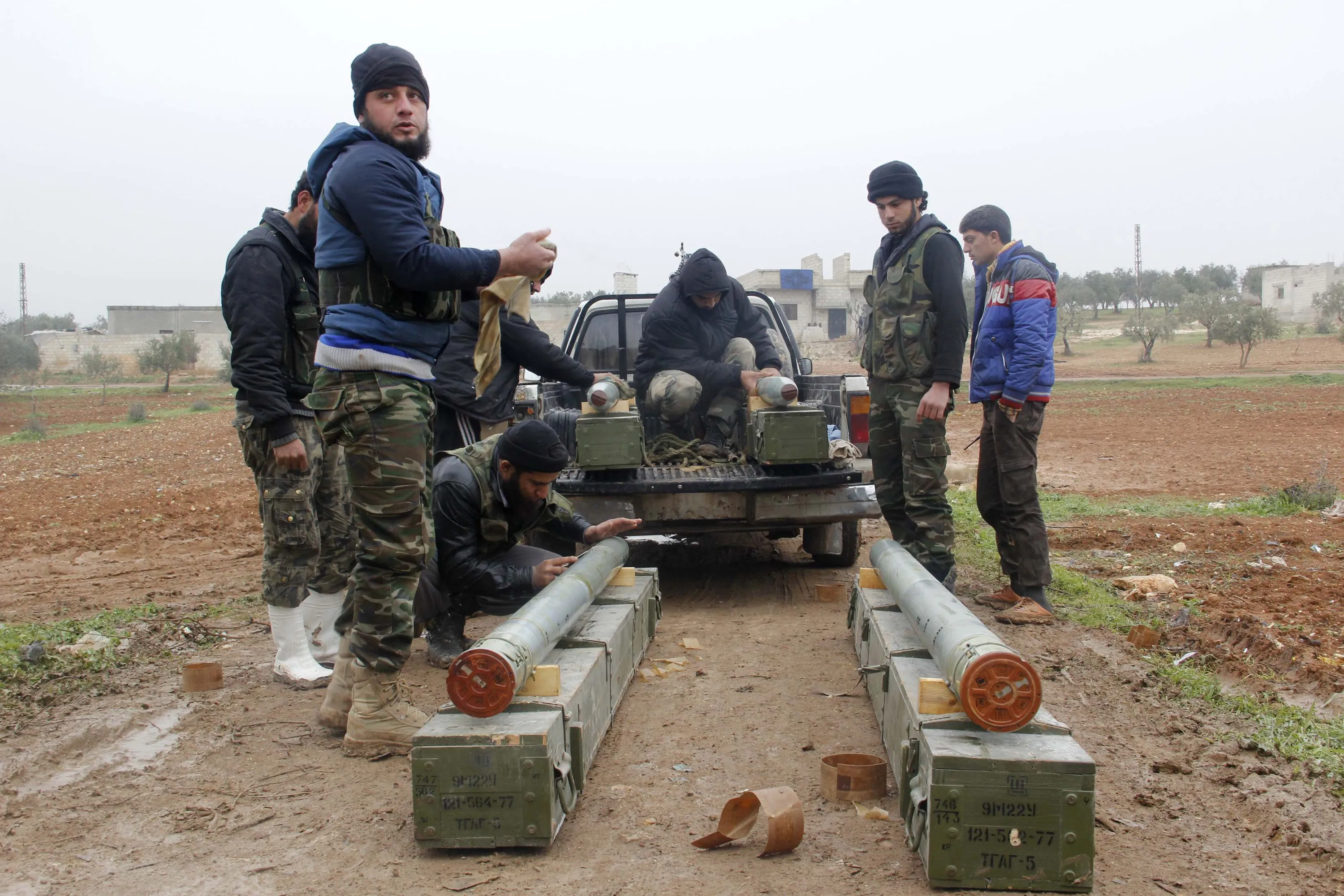 Al-Furqan brigade fighters, part of the Free Syrian Army, prepare Grad rockets before firing them towards forces loyal to Syria's president Bashar Al-Assad located in Mork town, Hama countryside, from Khan Sheikoun, Idlib countryside January 17, 2015. (Photo by Mohamad Bayoush/Reuters)
