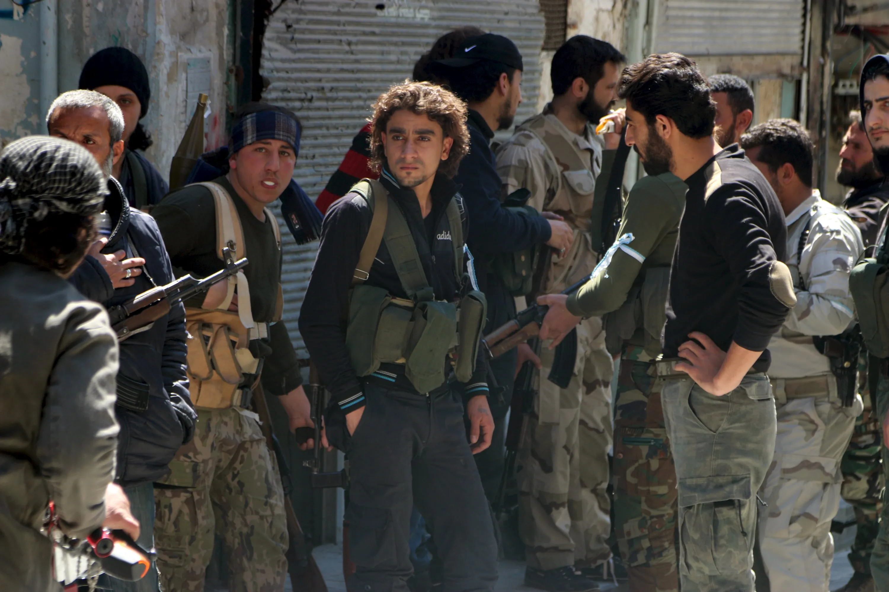 Free Syrian Amy fighters stand with their weapons prior to clashes with forces loyal to Syria's president Bashar Al-Assad during clashes in Old Aleppo, April 26, 2015. (Photo by Abdalrhman Ismail/Reuters)