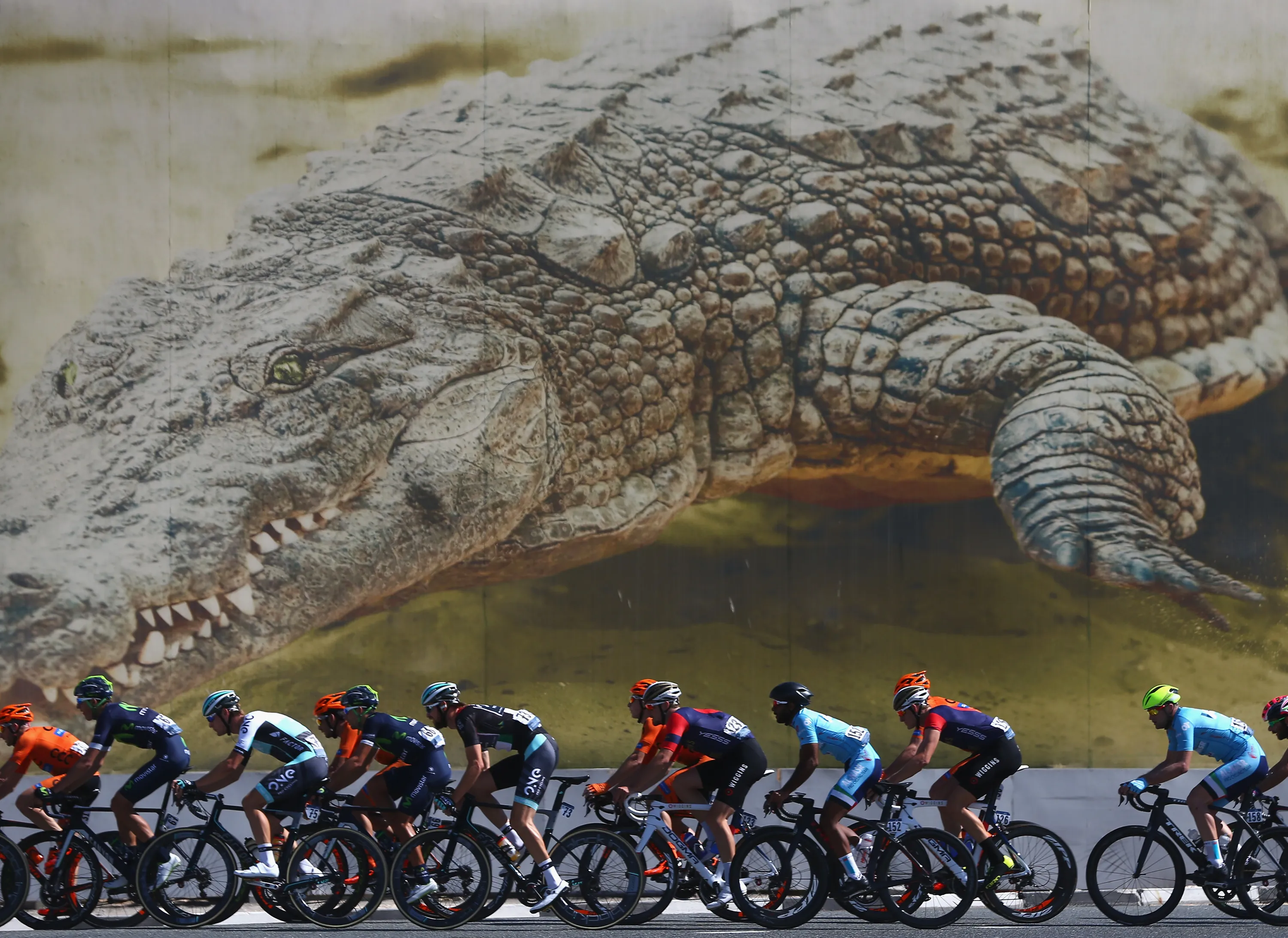 The peloton pass by the Dubai Crocodile Park during the Business Bay Stage Four of the Tour of Dubai on February 06, 2016 in Dubai, United Arab Emirates. (Photo by Michael Steele/Getty Images)