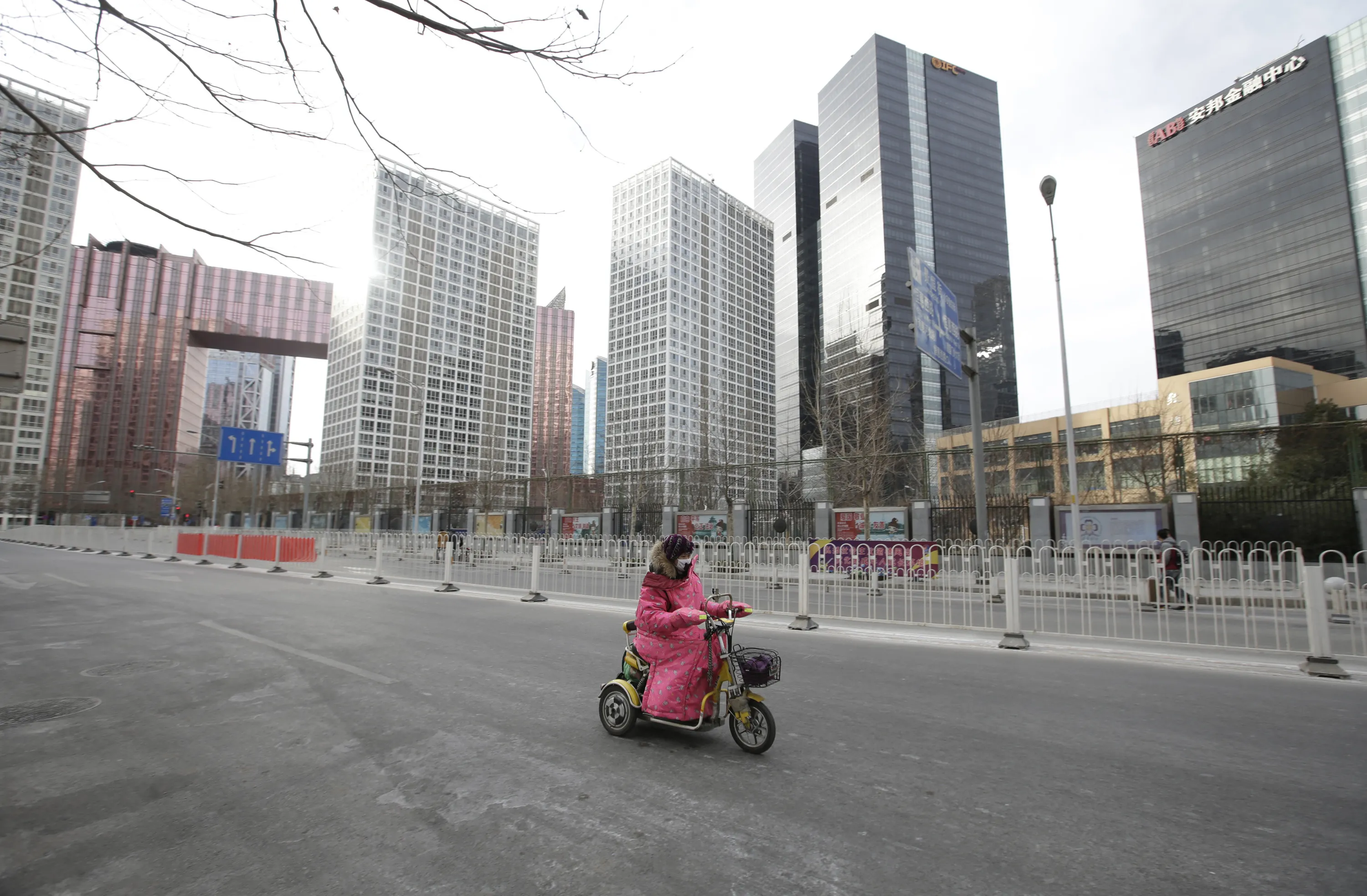 A woman drives a motorbike past office buildings in Beijing's central business district on the eve of the Chinese Lunar New Year, in Beijing, China, February 7, 2016. (Photo by Jason Lee/Reuters)