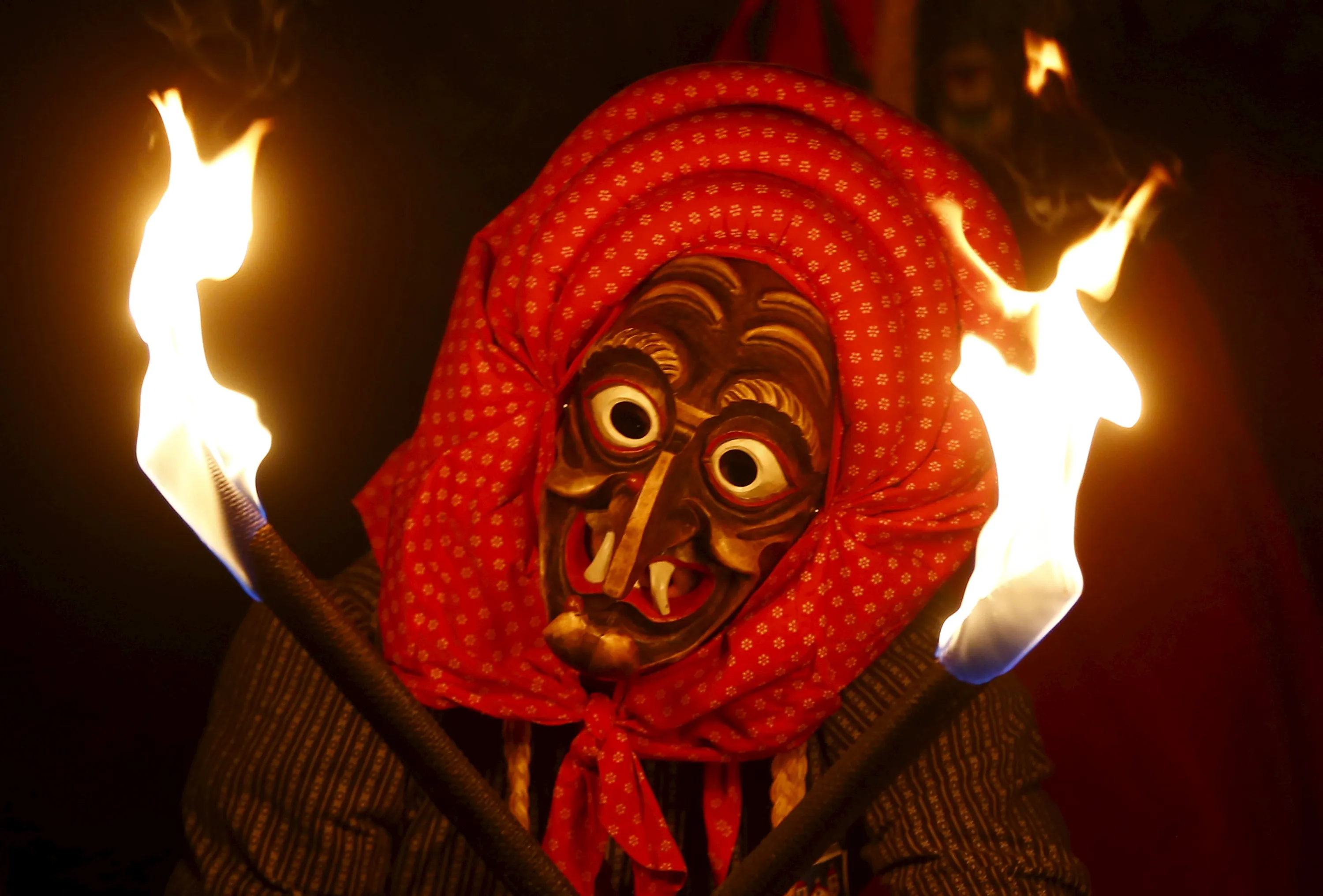 A group of traditional witches (Kandelhexen) light flares during their traditional “witches sabbath” carnival performance in the Black Forest village of Waldkirch, Germany, February 6, 2016. (Photo by Kai Pfaffenbach/Reuters)