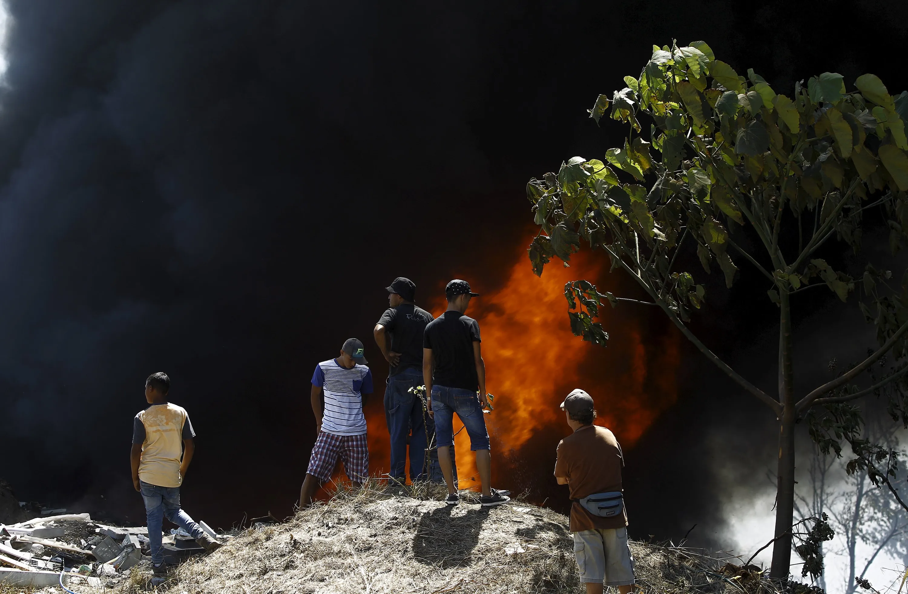 People watch a fire at an illegal garbage dump after neighbors decided to set fire to it, to prevent the spread of the mosquito-borne Zika virus, in a slum of San Jose, Costa Rica February 8, 2016. (Photo by Juan Carlos Ulate/Reuters)