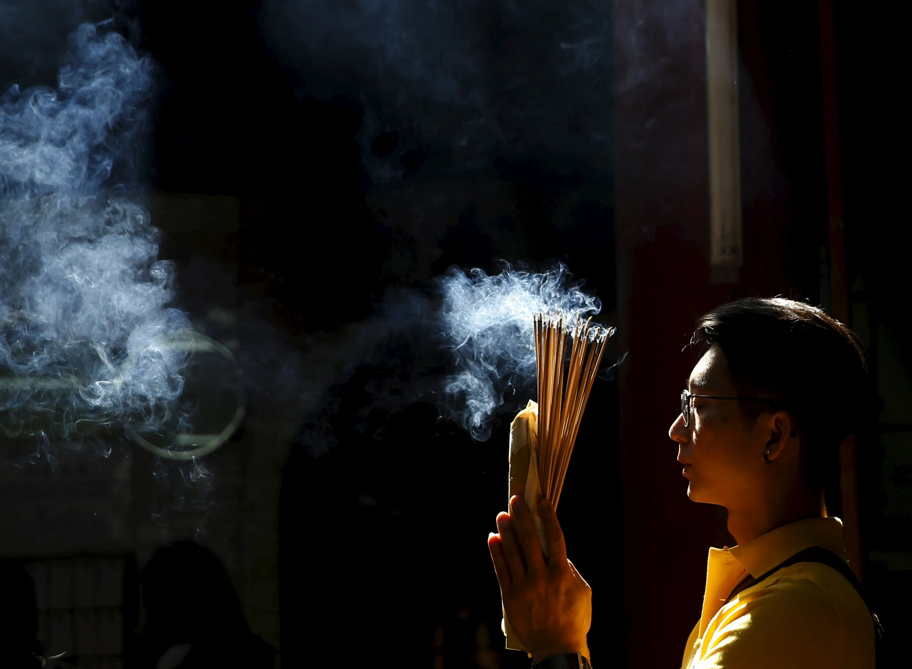 A man prays at the temple during Chinese New Year celebrations in Kuala Lumpur, Malaysia, February 9, 2016. (Photo by Olivia Harris/Reuters)