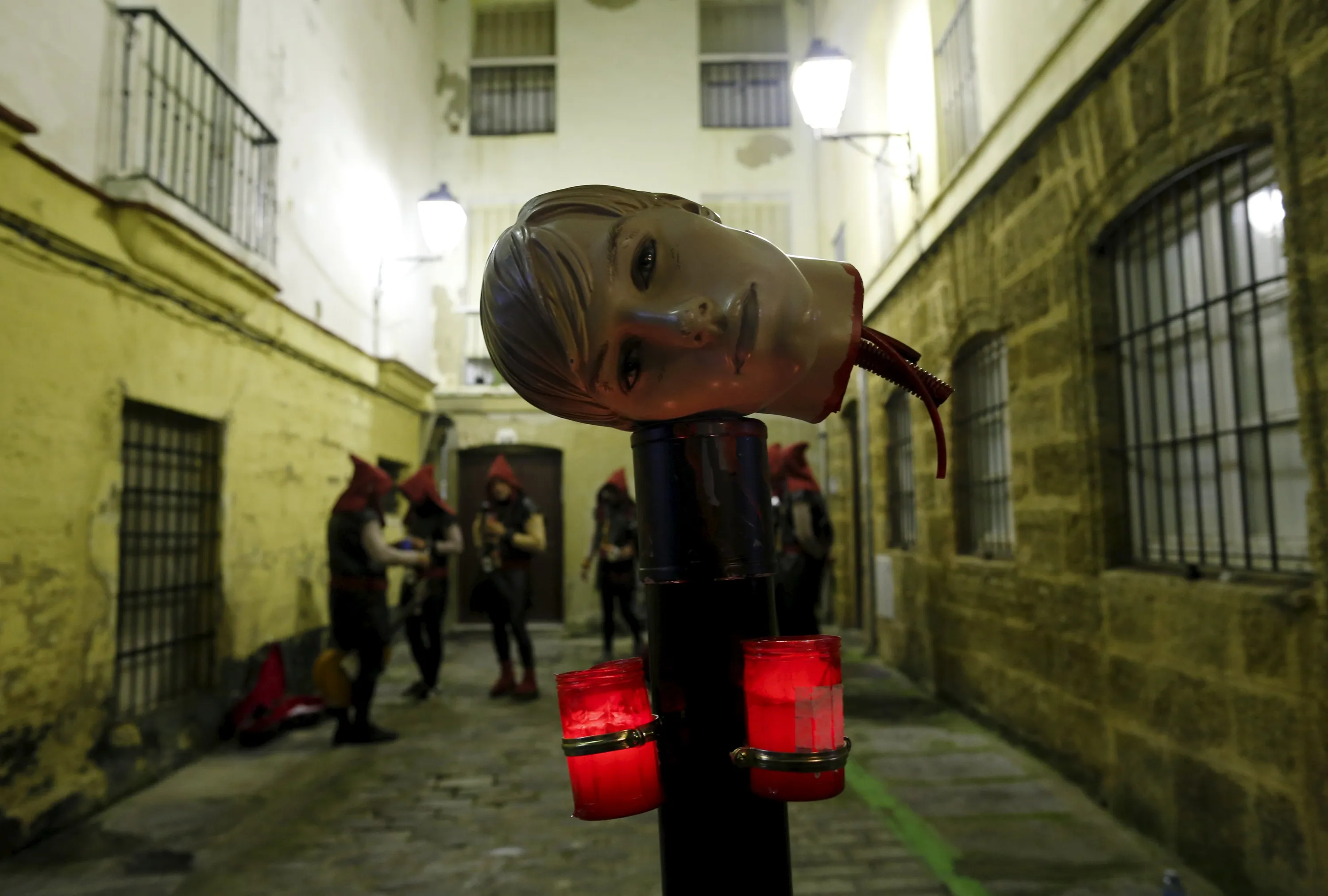 Revellers wait behind their set before performing during the Carnival of Cadiz, southern Spain February 9, 2016. The carnival will run until February 14. (Photo by Marcelo del Pozo/Reuters)