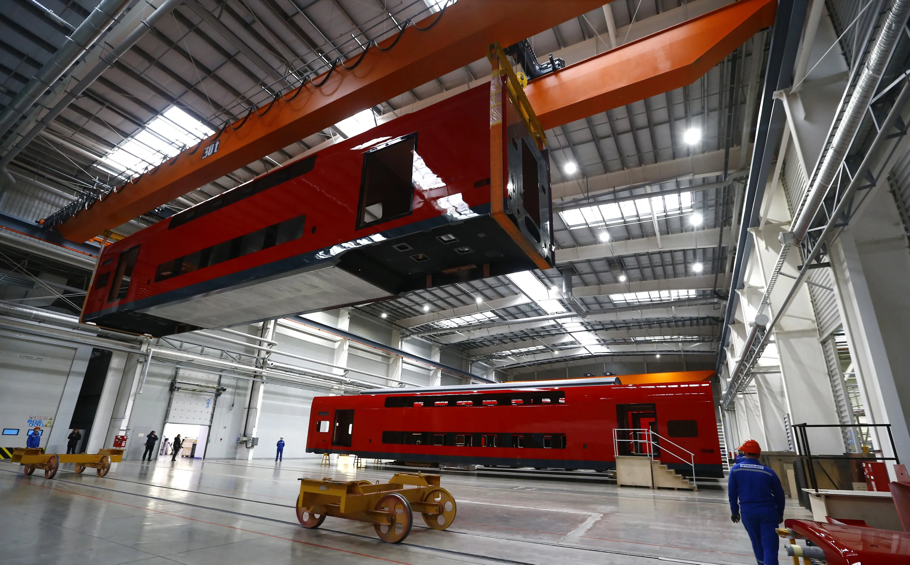 Employees work on an electric train assembly line at the “Stadler Minsk” plant in Fanipol, Belarus February 10, 2016. (Photo by Vasily Fedosenko/Reuters)