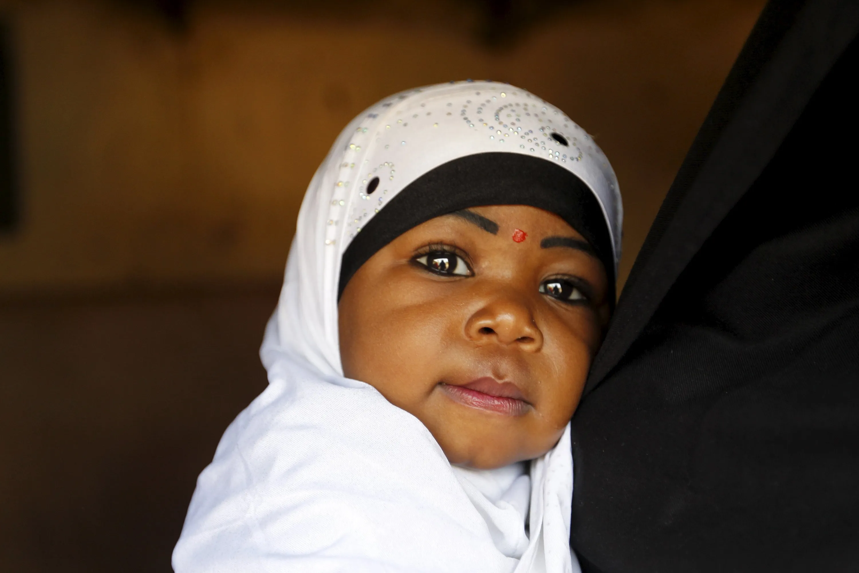 A Shi'ite girl, whose family claims that her father was killed during clashes between Shi'ites and the army, looks into the light at a local Shi'ite Islamic school in Zaria, Kaduna state, Nigeria, February 2, 2016. (Photo by Afolabi Sotunde/Reuters)