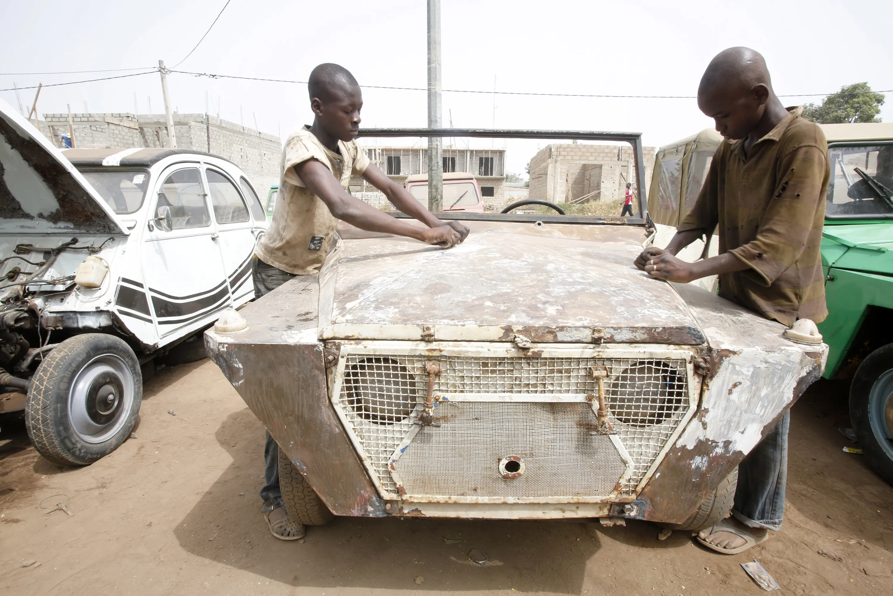 Two boys work on a car in Babi Kouakou's car repair garage in Bouake, Ivory Coast February 9, 2016. (Photo by Thierry Gouegnon/Reuters)