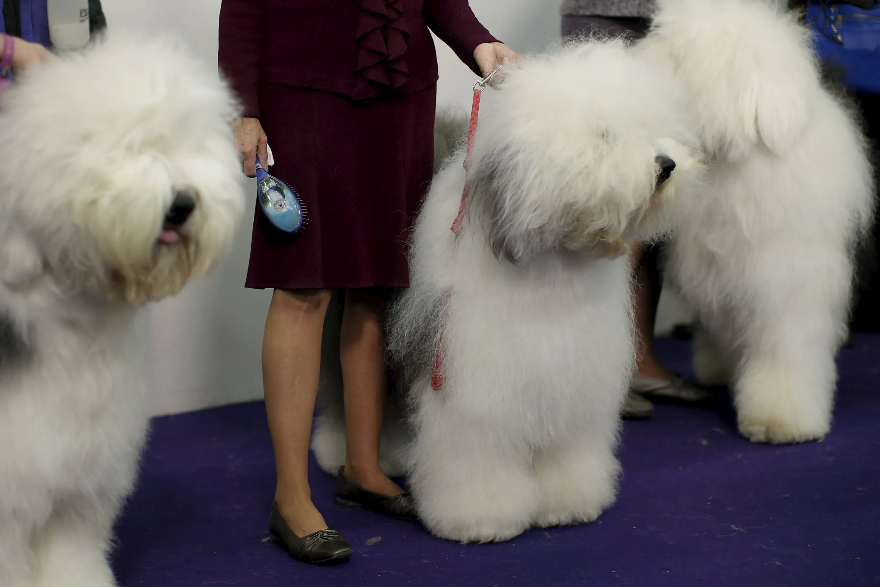 Old English sheepdogs stand outside the ring before judging at the 2016 Westminster Kennel Club Dog Show in the Manhattan borough of New York City, February 15, 2016. (Photo by Mike Segar/Reuters)