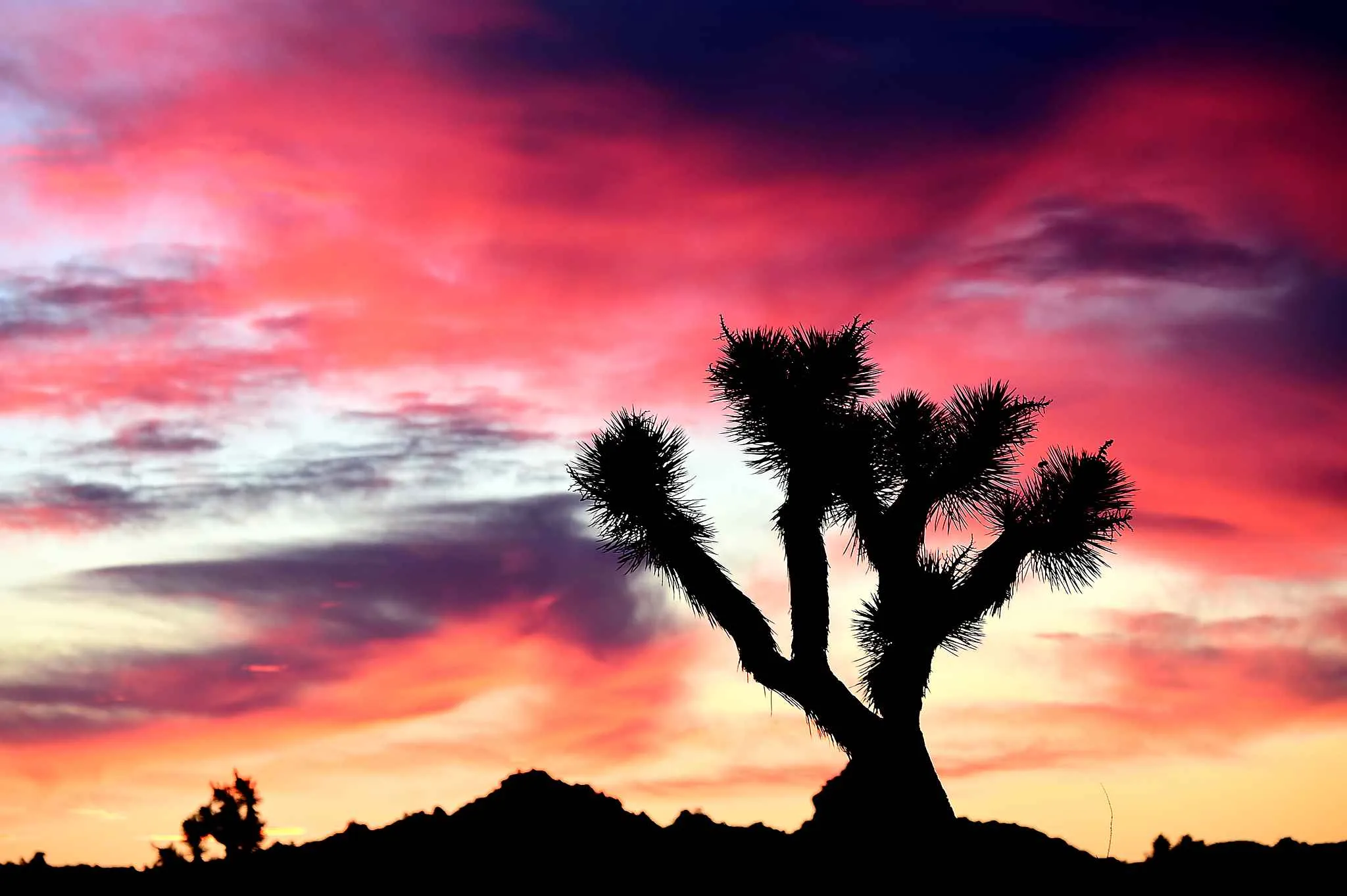 Clouds illuminated by the pre-dawn sun frame Joshua Trees in Pioneertown, California, in the Mojave Desert, January 25, 2016. Pioneertown, an Old West town built in 1940's for the filming of movies and TV serials, is now a popular tourist site located 21 miles (34 km)northwest of Joshua Tree National Park. (Photo by Robyn Beck/AFP Photo)