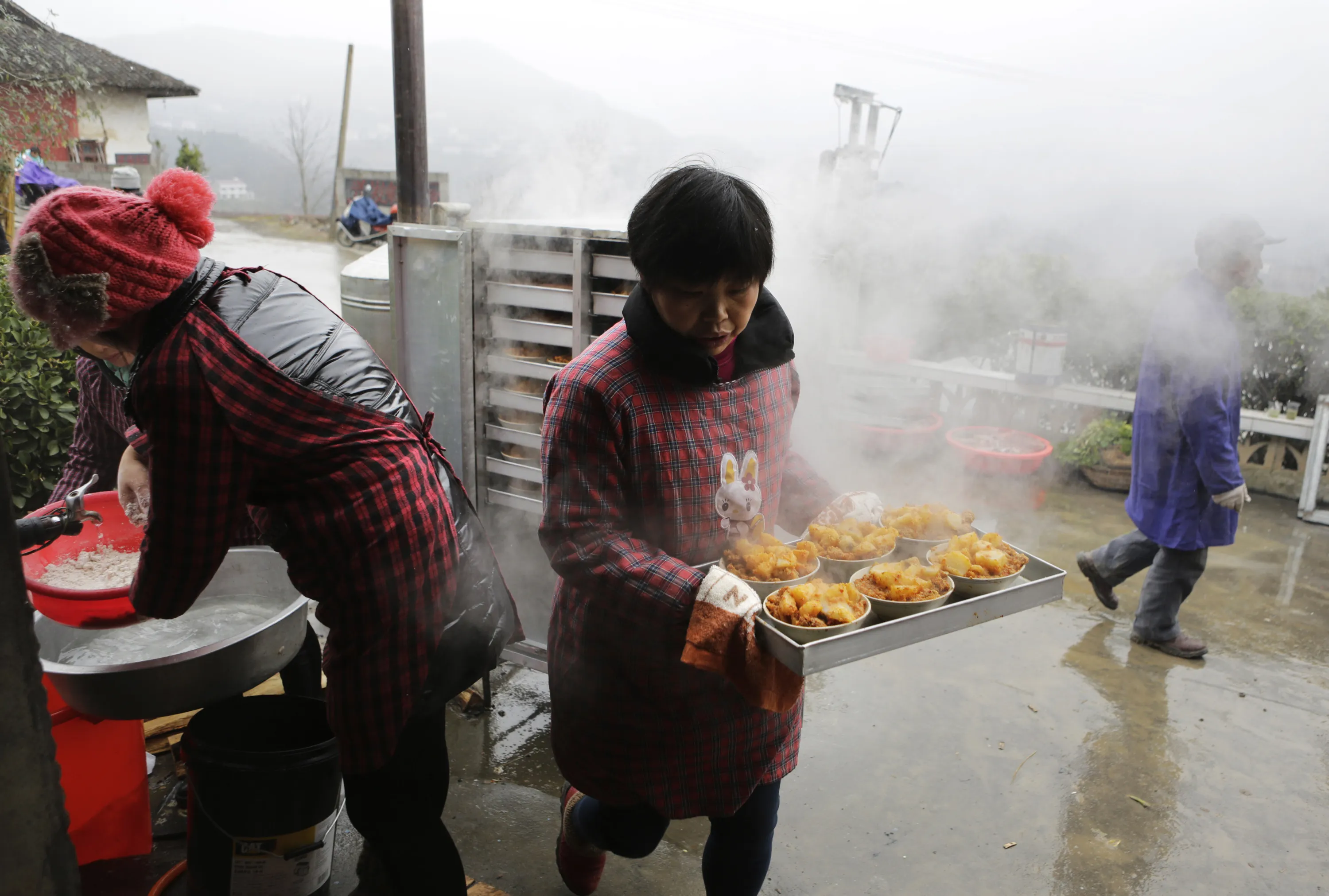 A local cook prepares a traditional ethnic Tujia wedding feast for about 2000 guests during celebrations marking the Lunar New Year, in Ziqiu town, Changyang county of China’s Hubei province, February 14, 2016. (Photo by Jason Lee/Reuters)
