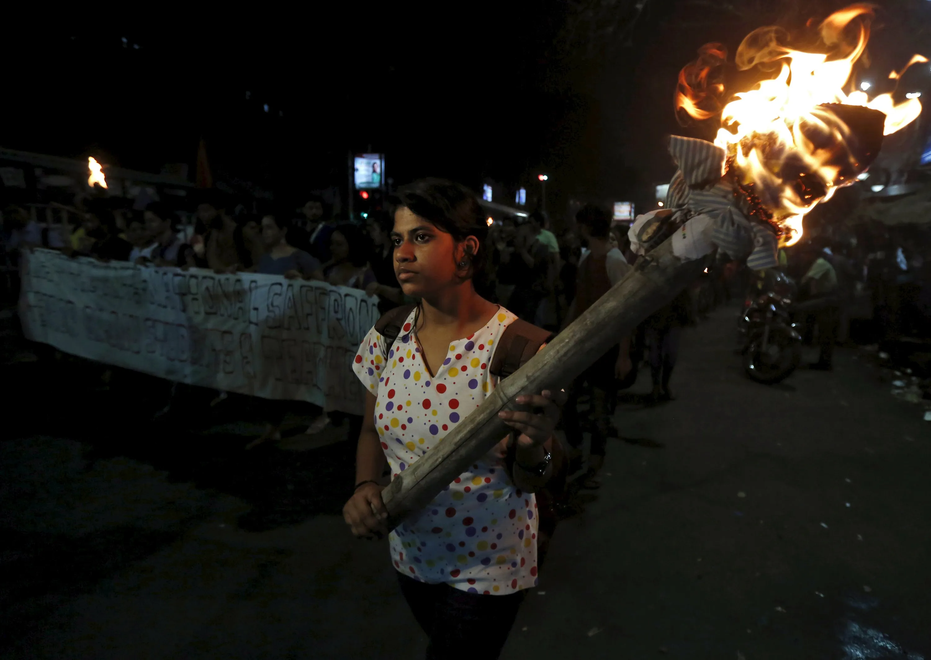 A student holds a torch during a rally to protest against the arrest of a student of Jawaharlal Nehru University (JNU), outside the Jadavpur University campus in Kolkata, India, February 16, 2016. (Photo by Rupak De Chowdhuri/Reuters)