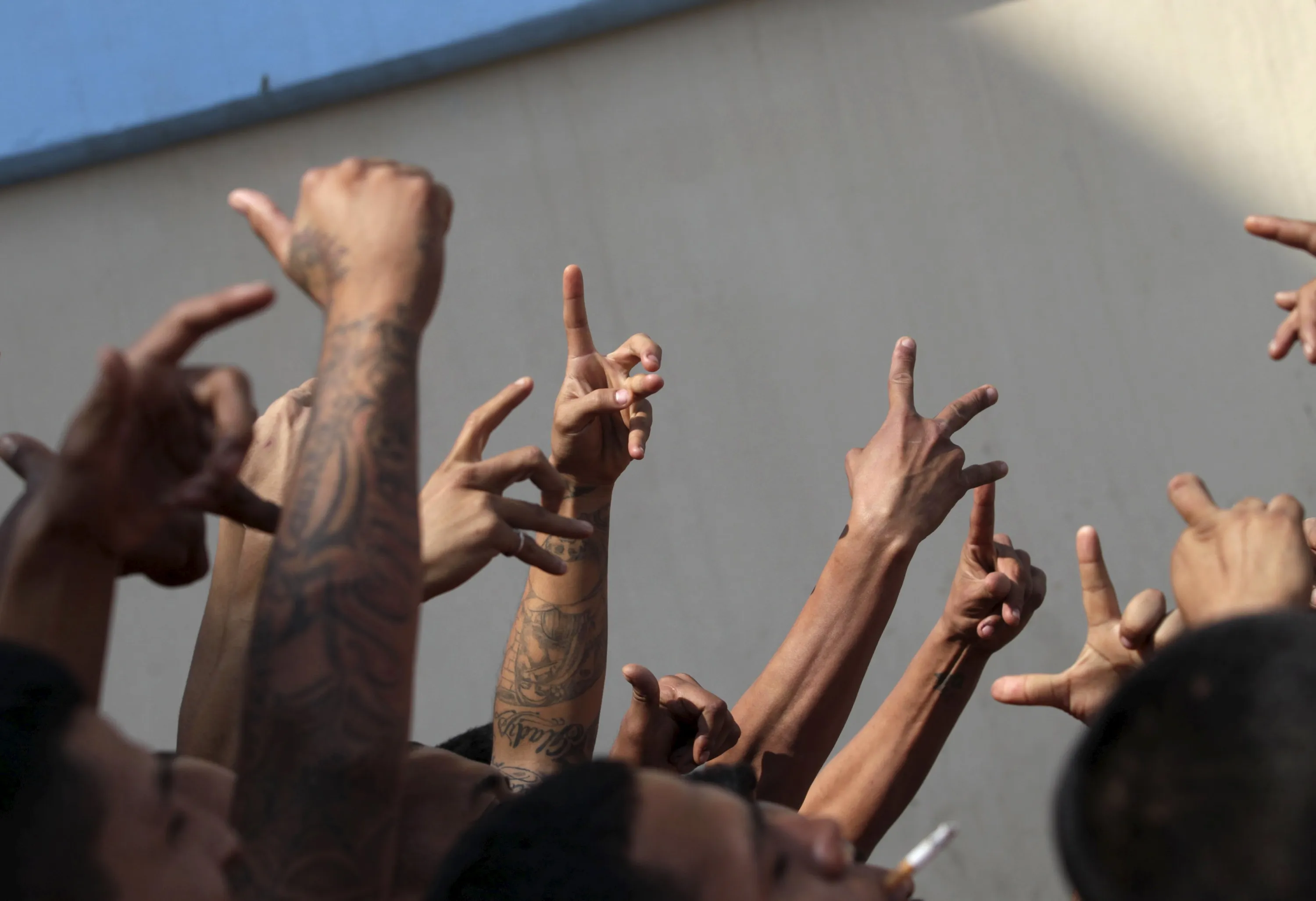 Inmates gesture gang signs in the Topo Chico prison, during a media tour, in Monterrey, Mexico, February 17, 2016. (Photo by Daniel Becerril/Reuters)