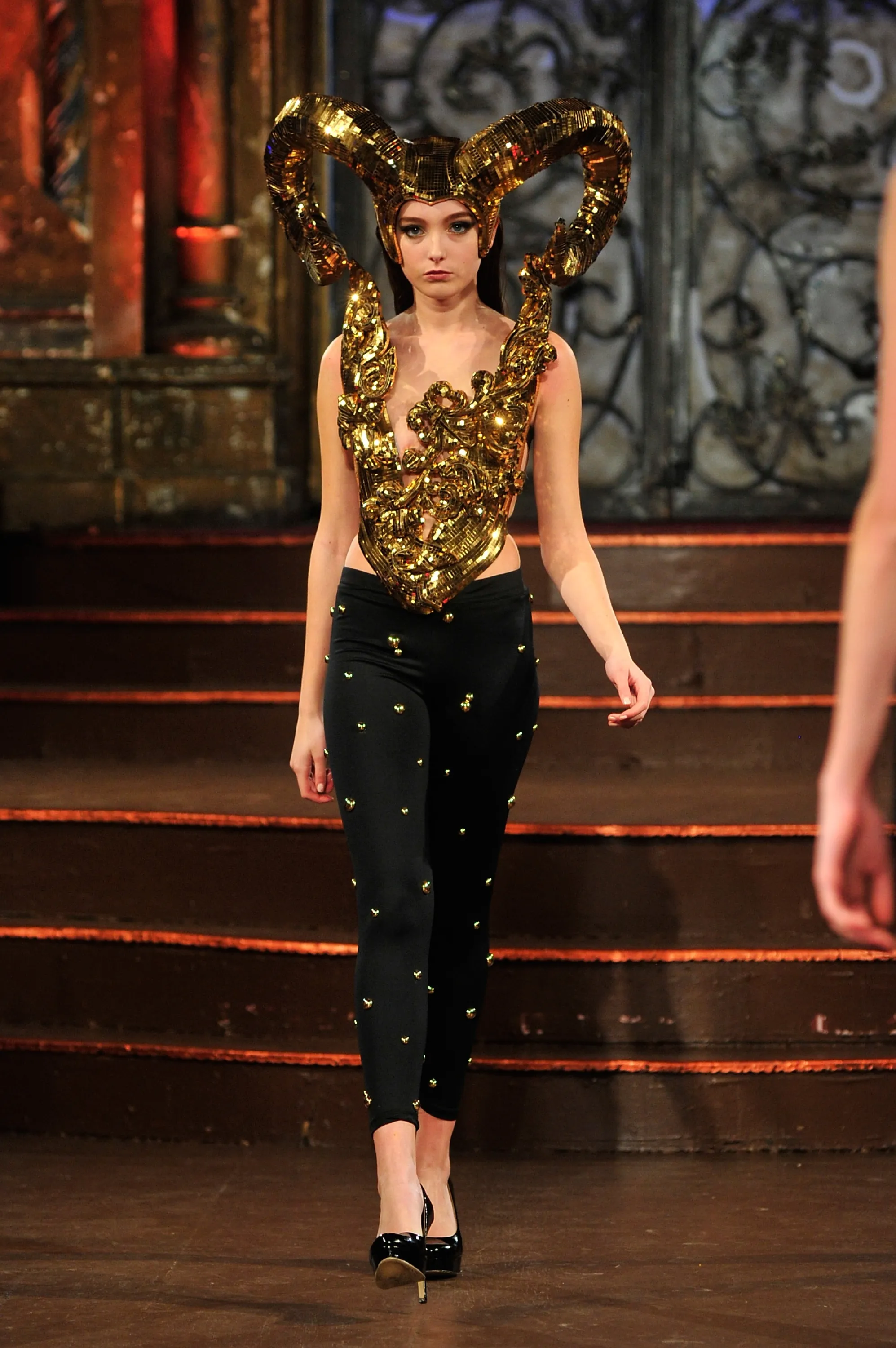 A model walks the runway at Rocky Gathercole – Art Hearts Fashion NYFW Fall/Winter 2016 at The Angel Orensanz Foundation on February 17, 2016 in New York City. (Photo by Kris Connor/Getty Images For Art Hearts Fashion)