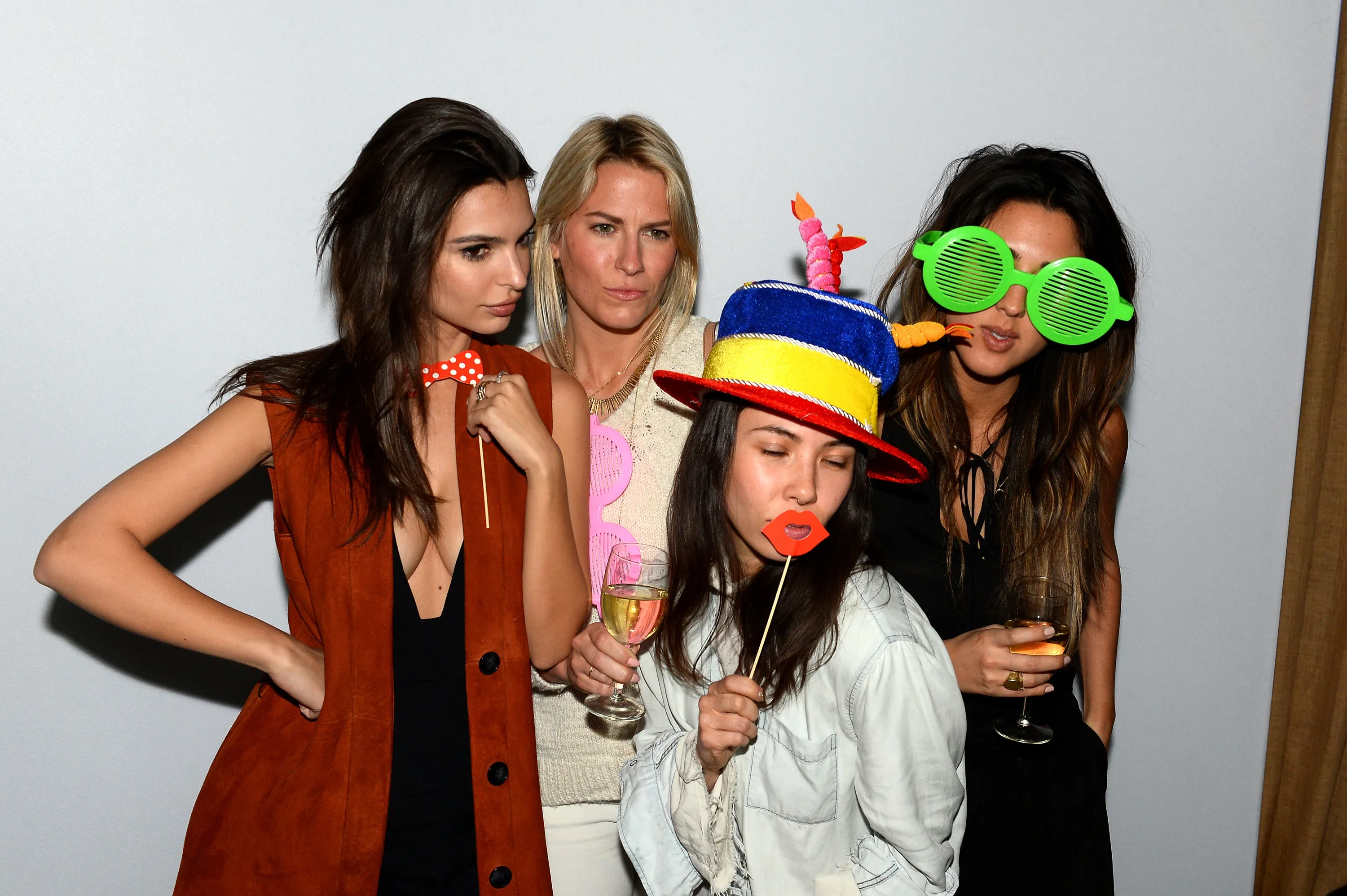 Emily Ratajkowski (L) with guests celebrate fashion week with a showcase for Studio Bryce Thompson at Suzer Groups U.S. Business Partners' Hotel, The NoMo Soho, Sponsored By Dom Perignon at Nomo Soho Hotel on February 18, 2016 in New York City. (Photo by Andrew Toth/Getty Images for Baran Suzer)