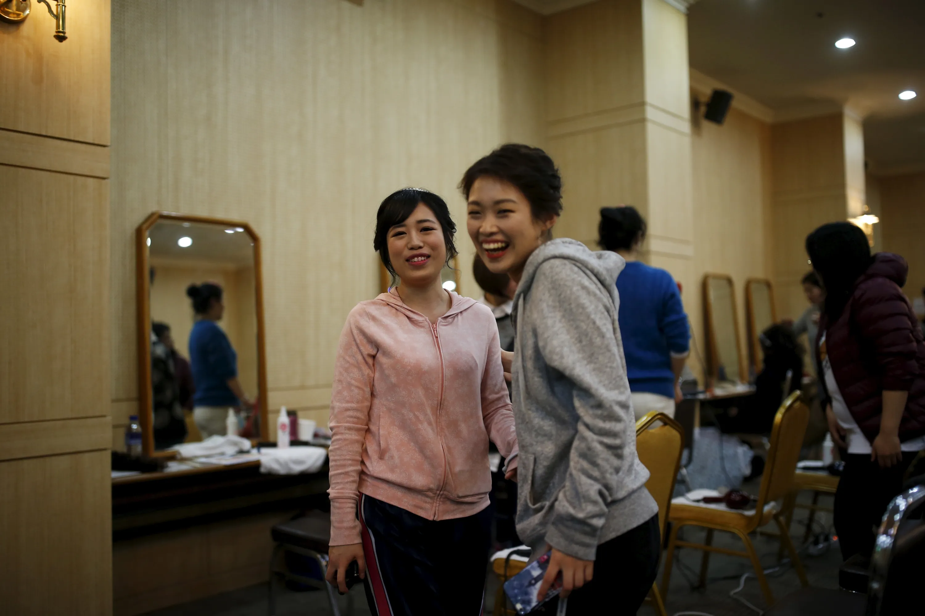 Japanese brides reacts after receiving a makeover as they prepare for the upcoming mass wedding ceremony of the Unification Church at a resort in Yangpyeong, South Korea, February 19, 2016. (Photo by Kim Hong-Ji/Reuters)