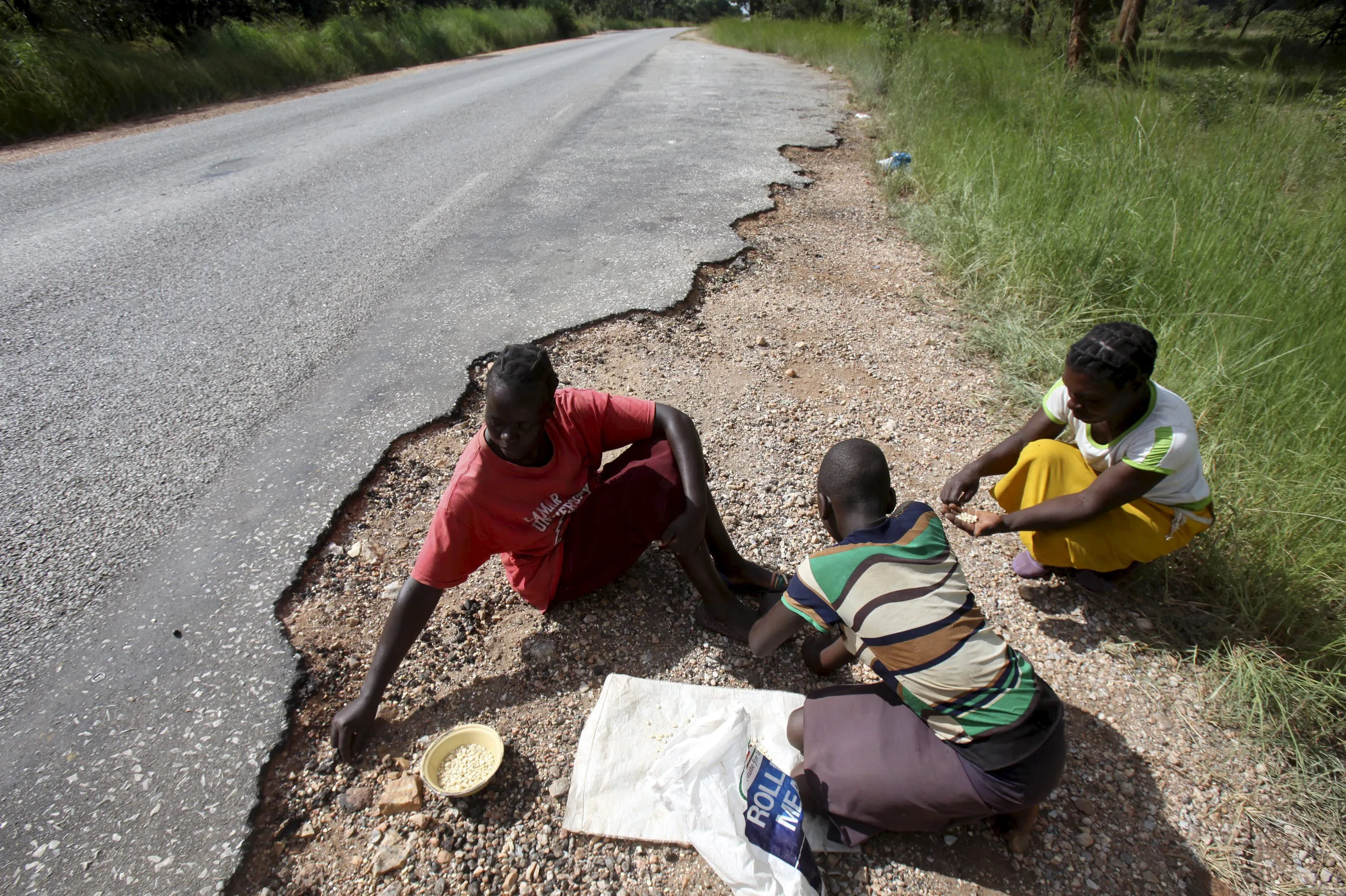 Women gather grain spilled by cargo trucks from Zambia along a highway in Magunje, Zimbabwe, February 20, 2016. Earlier this month Zimbabwean President Robert Mugabe declared a state of disaster in most rural parts of the country severely hit by a drought. (Photo by Philimon Bulawayo/Reuters)