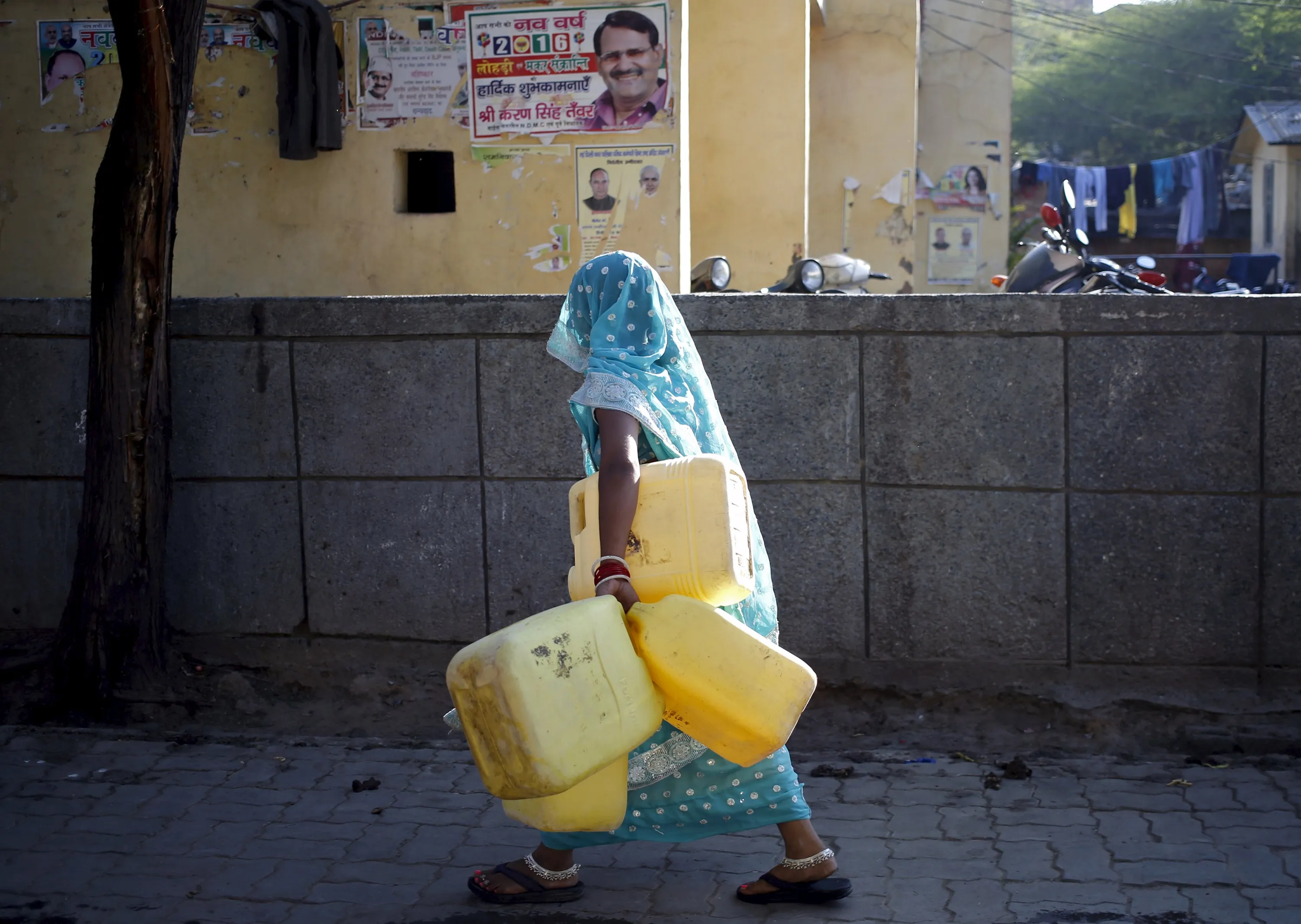 A woman carries empty containers to fetch water from a municipal water tap in New Delhi, India, February 21, 2016. (Photo by Anindito Mukherjee/Reuters)