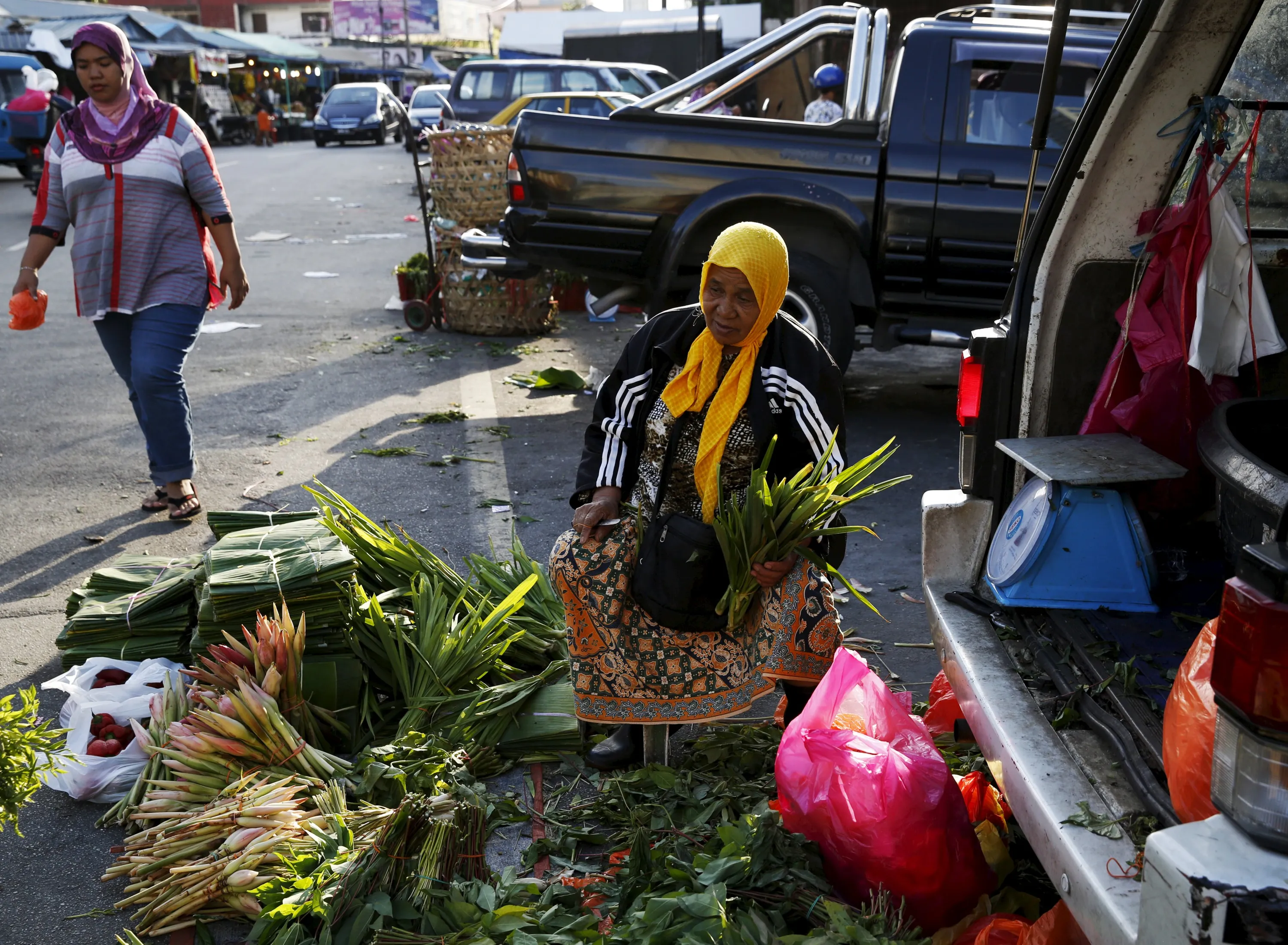 A woman sells vegetables out of the boot of her car outside a market in Kuala Lumpur, Malaysia, February 18, 2016. (Photo by Olivia Harris/Reuters)