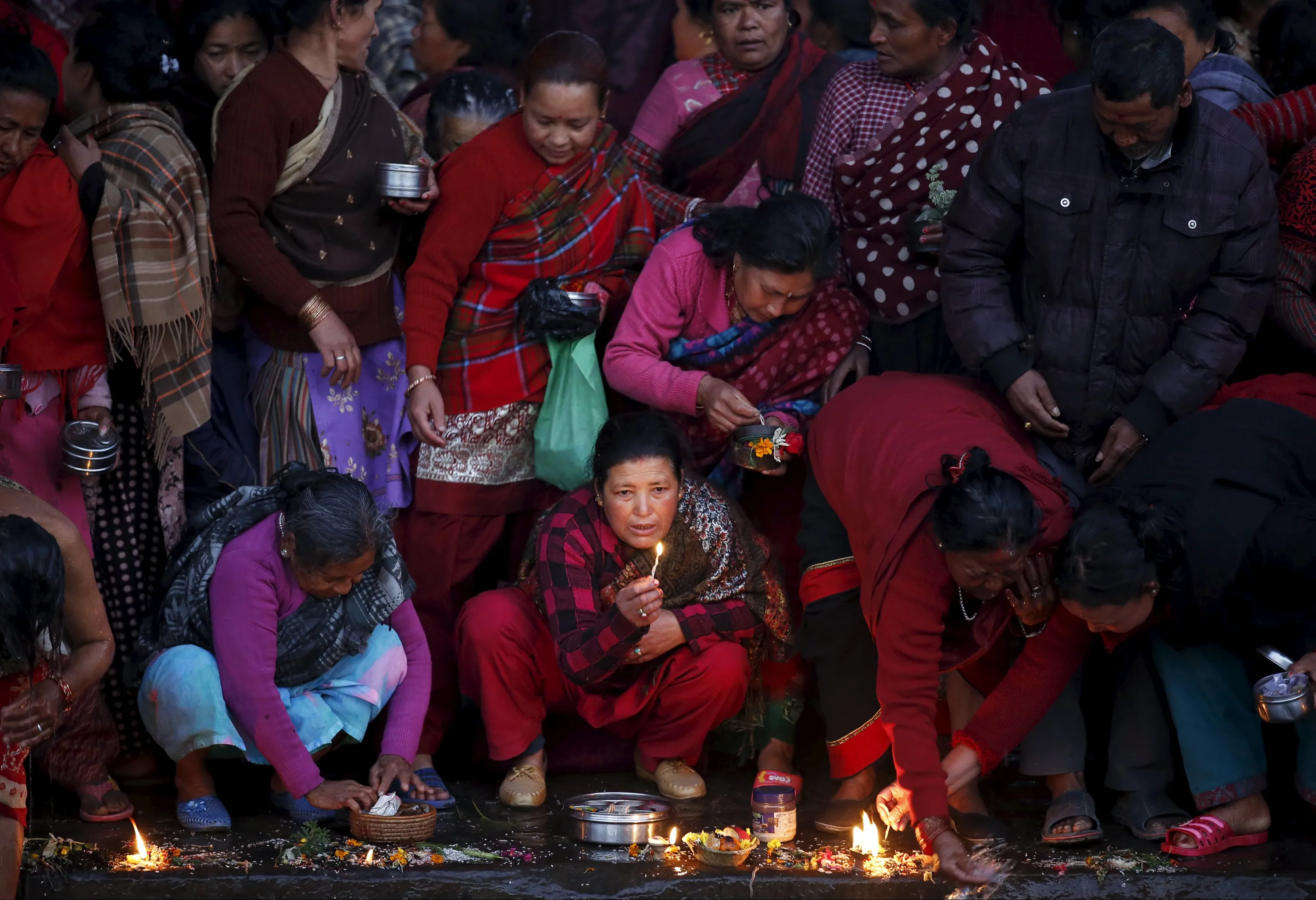 Devotees offer prayers along the bank of Hanumante River during the final day of the month-long Swasthani Brata Katha festival in Bhaktapur, Nepal, February 22, 2016. (Photo by Navesh Chitrakar/Reuters)