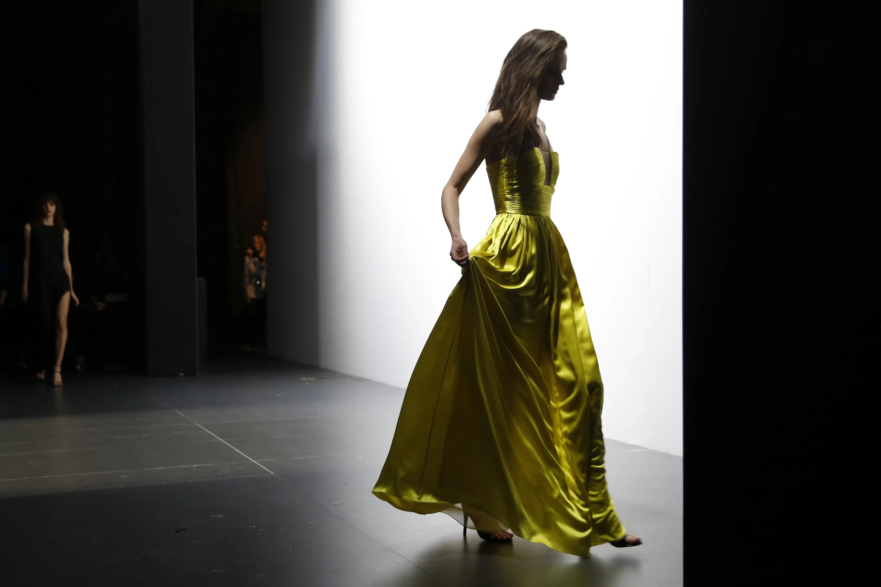A model presenting a creation from The 2nd Skin Co.'s Fall/Winter 2016 collection walks away after taking the catwalk during the Mercedes-Benz Fashion Week in Madrid, Spain, February 22, 2016. (Photo by Susana Vera/Reuters)
