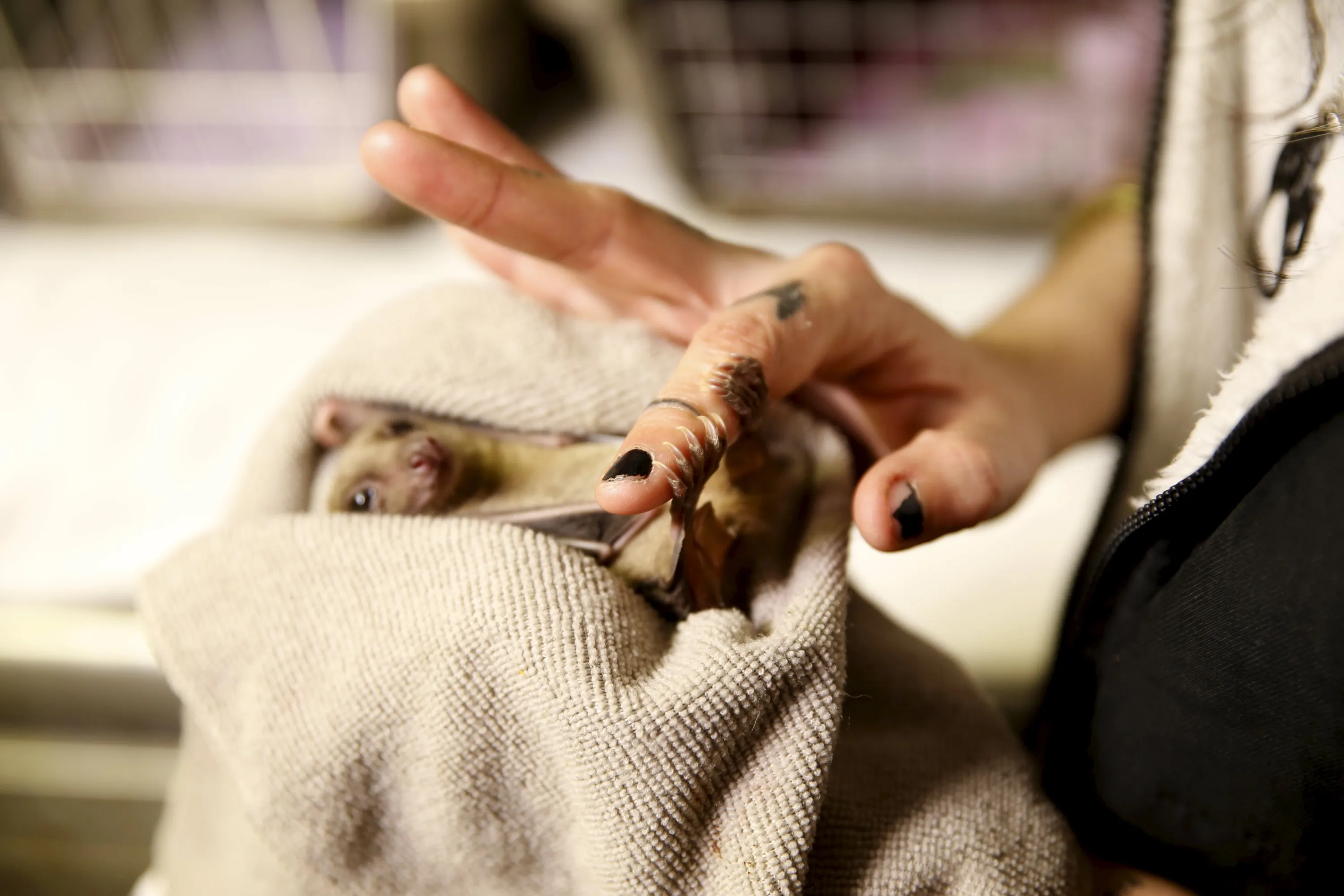 Israeli woman, Nora Lifschitz, 28, holds an injured Egyptian fruit bat at her home in Tel Aviv February 21, 2016. (Photo by Baz Ratner/Reuters)