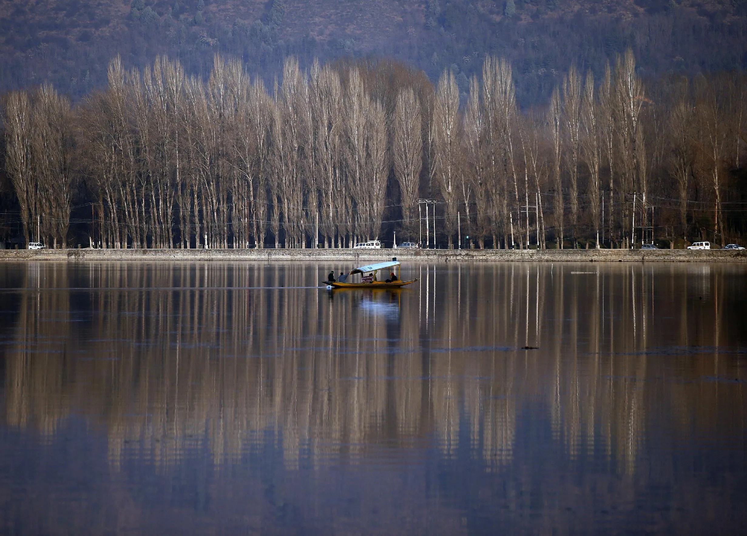 People row a boat in the waters of Dal Lake on a sunny winter day in Srinagar February 2, 2016. (Photo by Danish Ismail/Reuters)