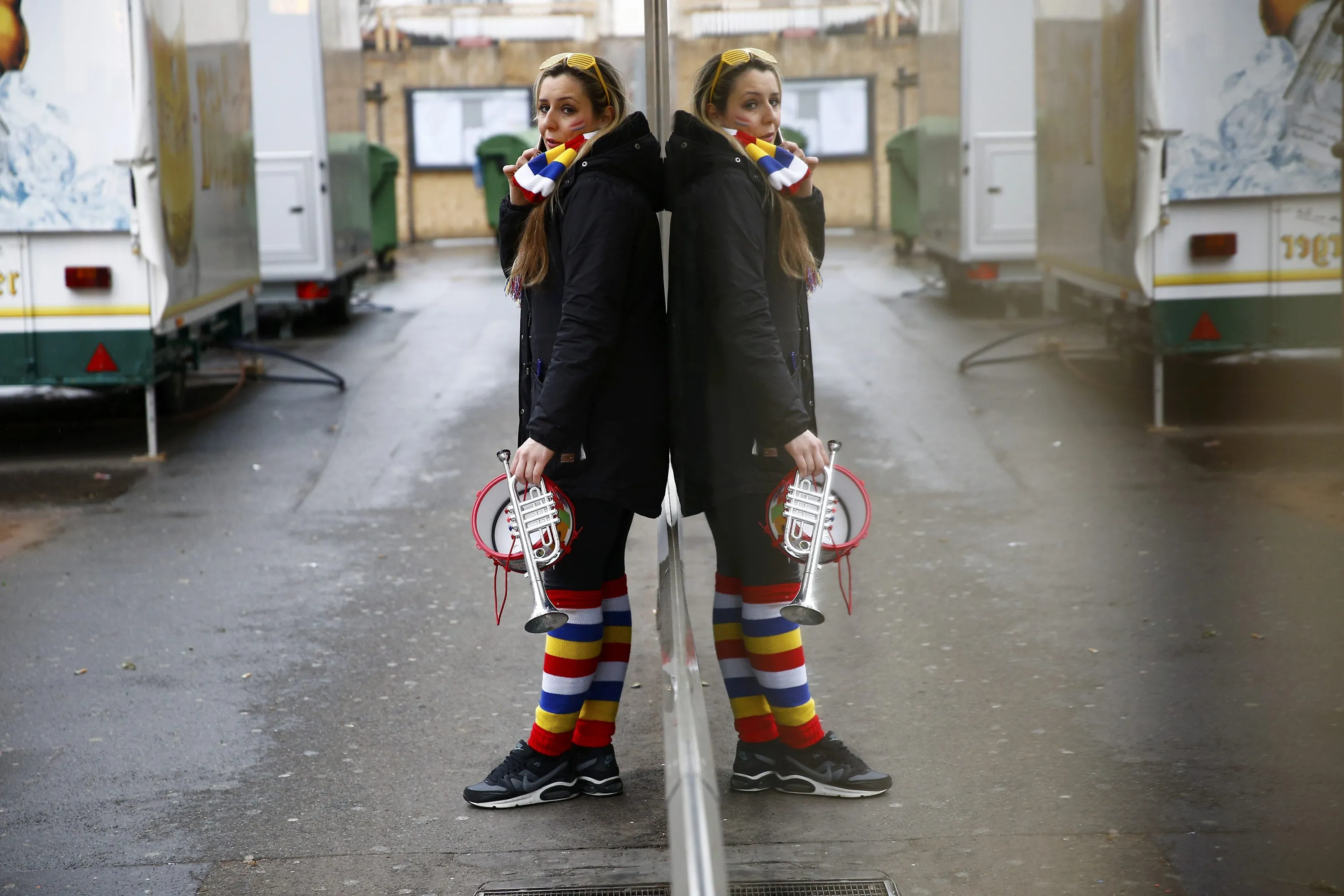 A carnival reveller shelters from the rain after the “Rosenmontag” (Rose Monday) parade, the highlight of the annual carnival season, was called-off in Mainz, Germany, February 8, 2016. (Photo by Kai Pfaffenbach/Reuters)