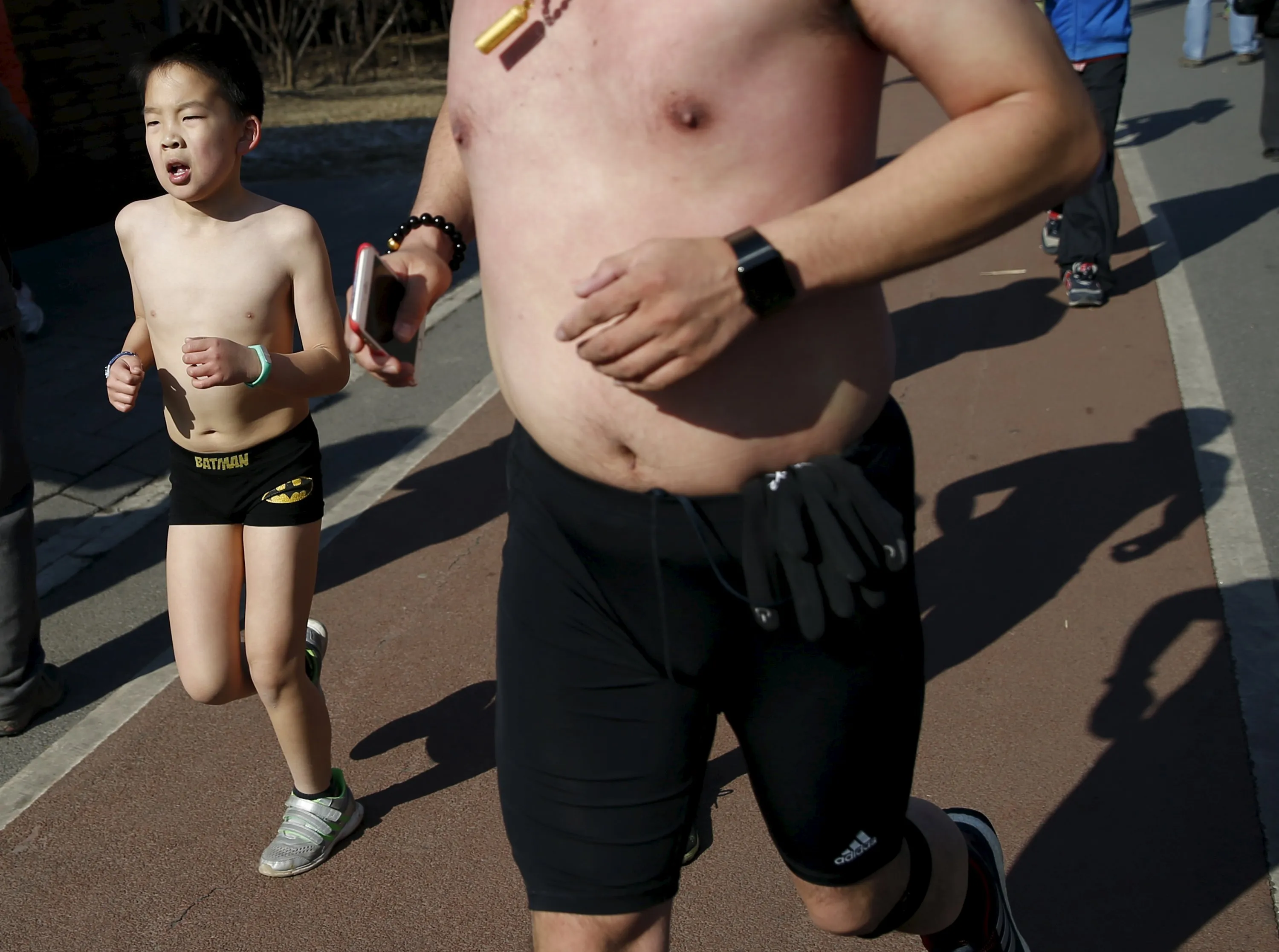 A boy runs at the “Half-Naked Marathon” at Olympic Forest park in Beijing, China, February 28, 2016 (Photo by Kim Kyung-Hoon/Reuters)
