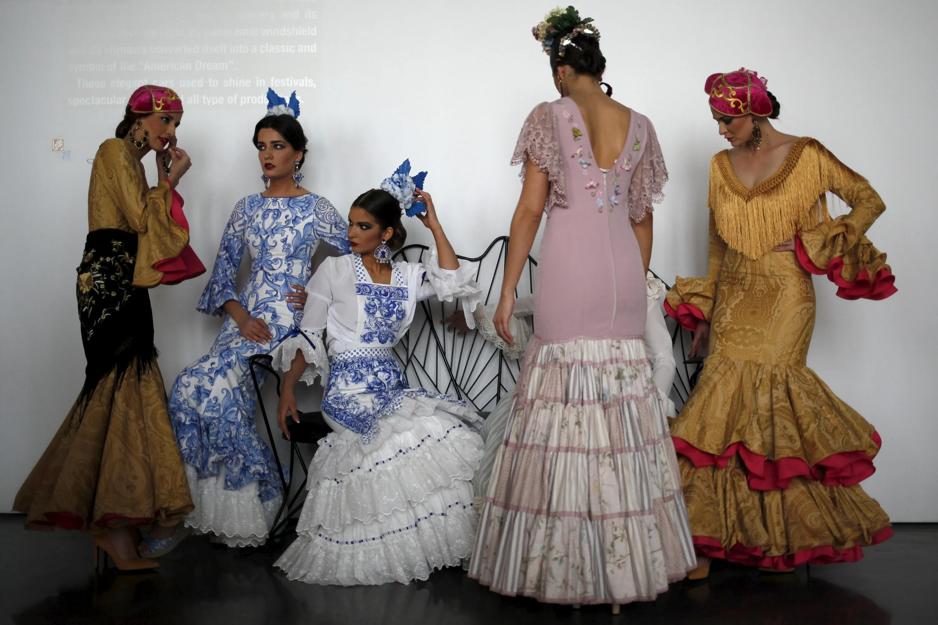 Models wearing creations by Macarena Delgado wait backstage during the International Flamenco Fashion Fair (FIMAF) in Malaga, February 27, 2016. (Photo by Jon Nazca/Reuters)